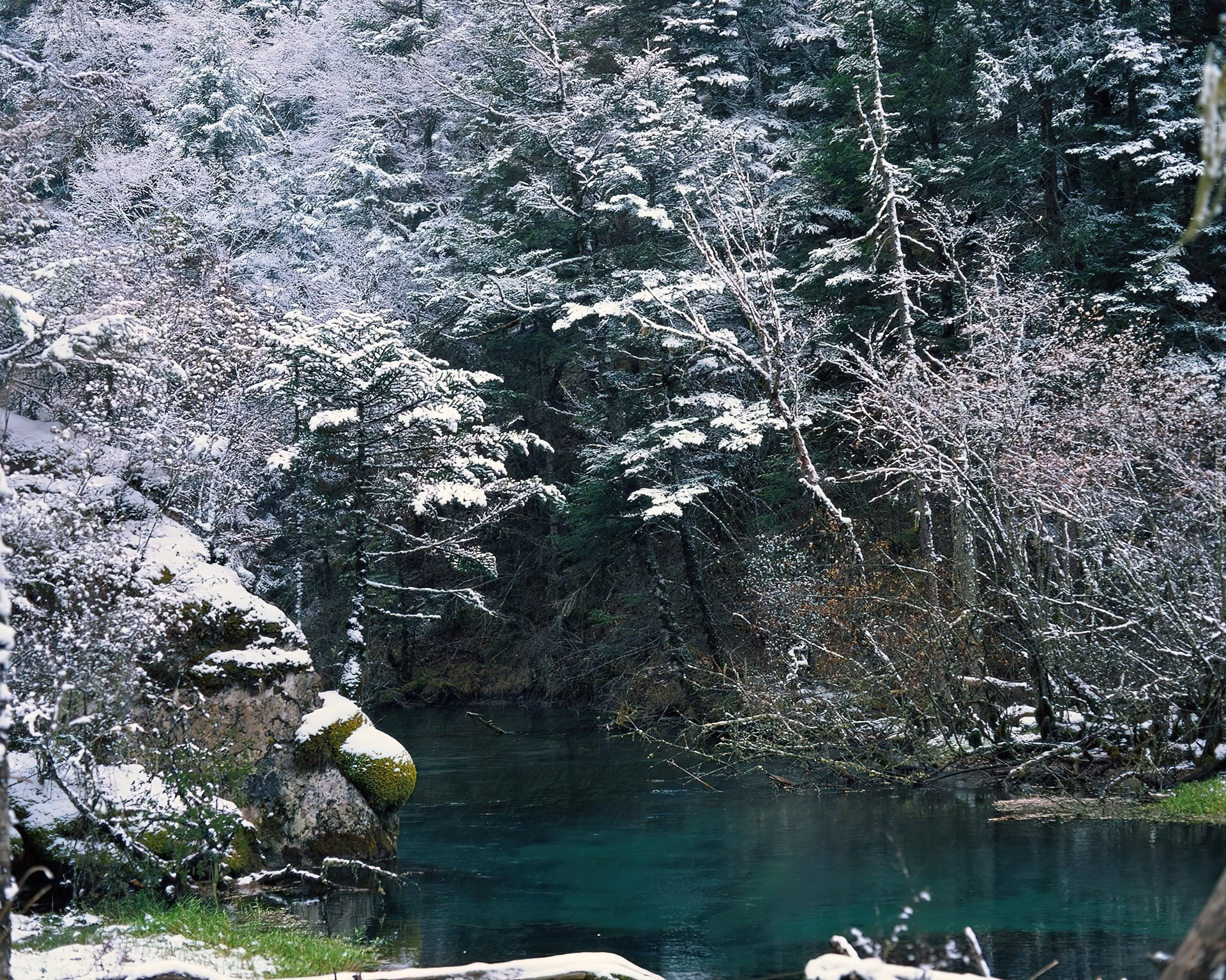 Edytor tapety: Las, Jezioro, Skały
