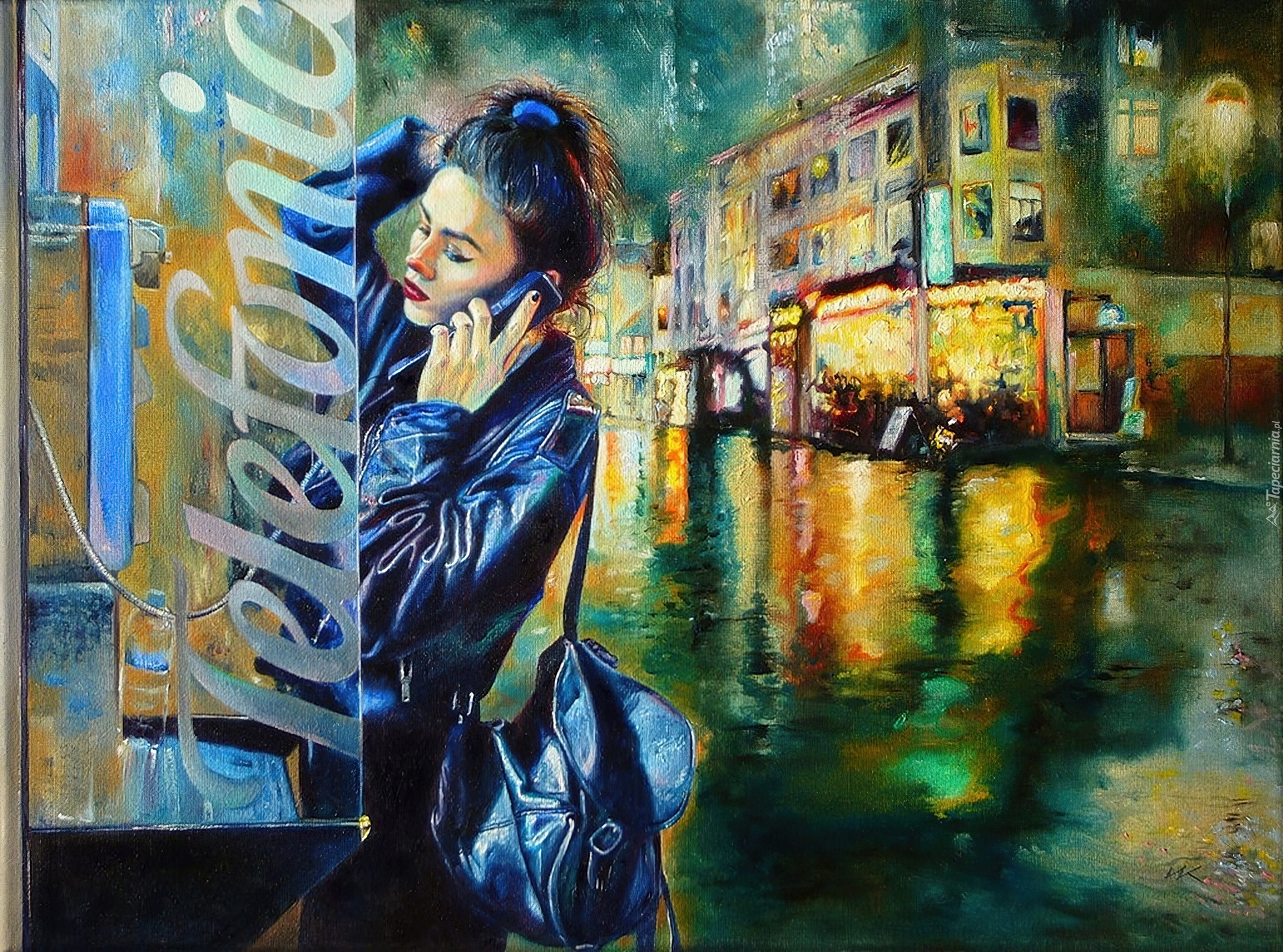 Edytor tapety: Włodzimierz Kukliński, Kobieta, Brunetka, Budka, Telefoniczna