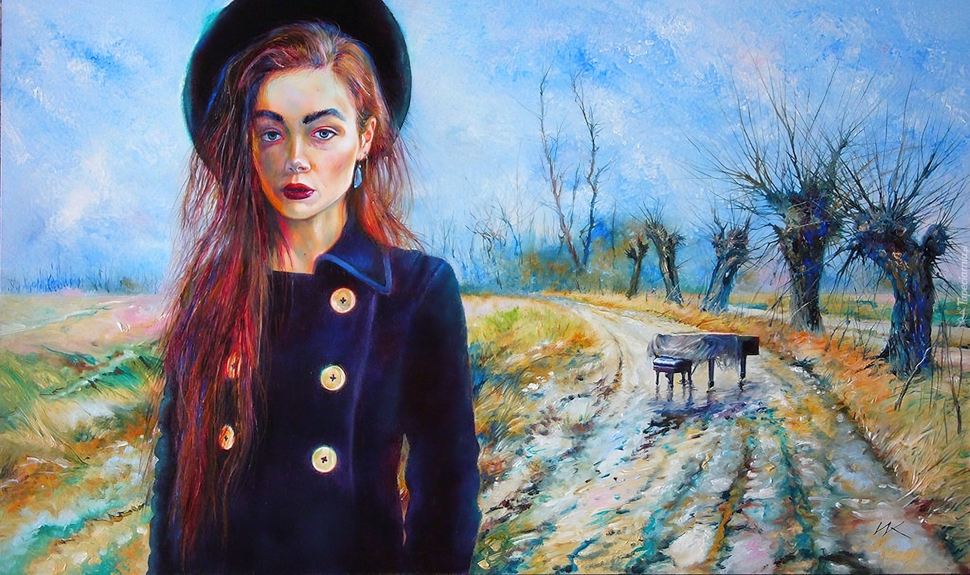 Edytor tapety: Włodzimierz Kukliński, Kobieta, Kapelusz, Fortepian