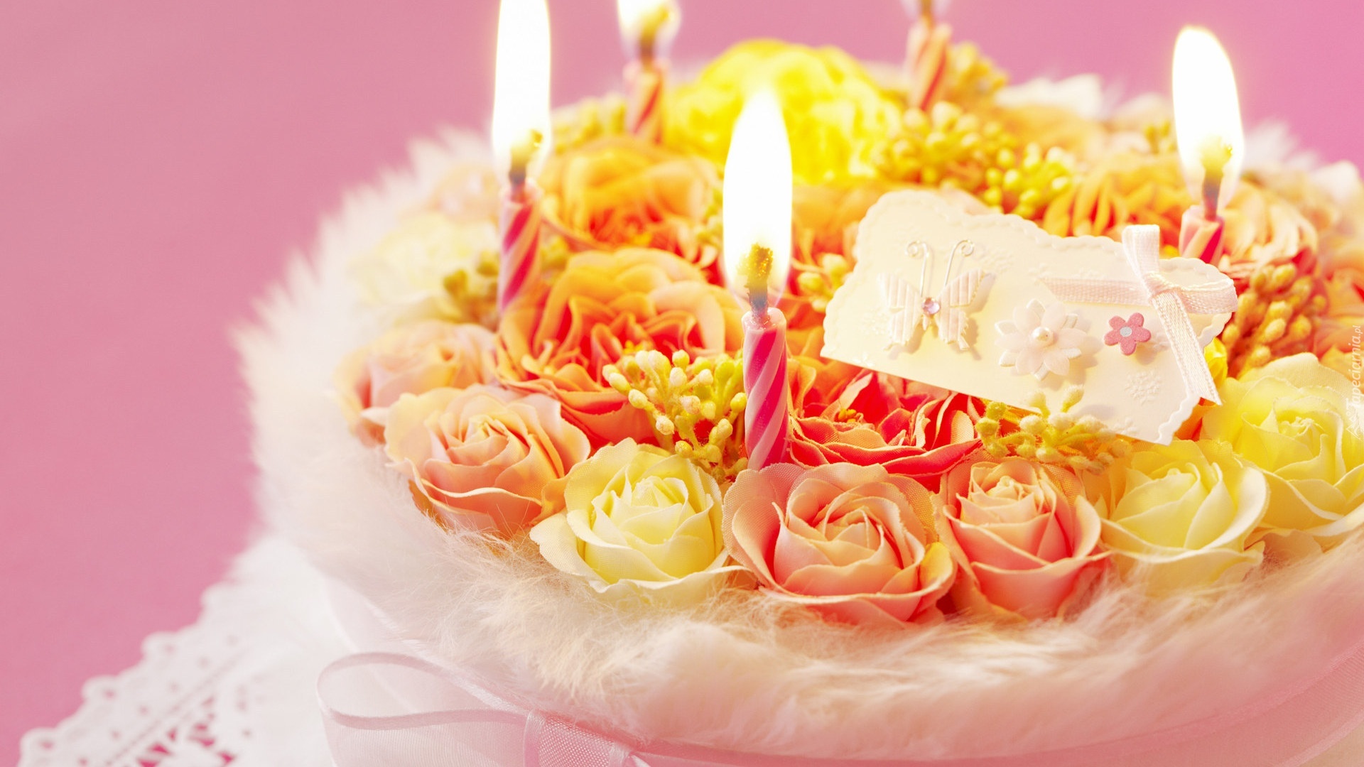 Edytor tapety: Tort, Róże, Świeczki