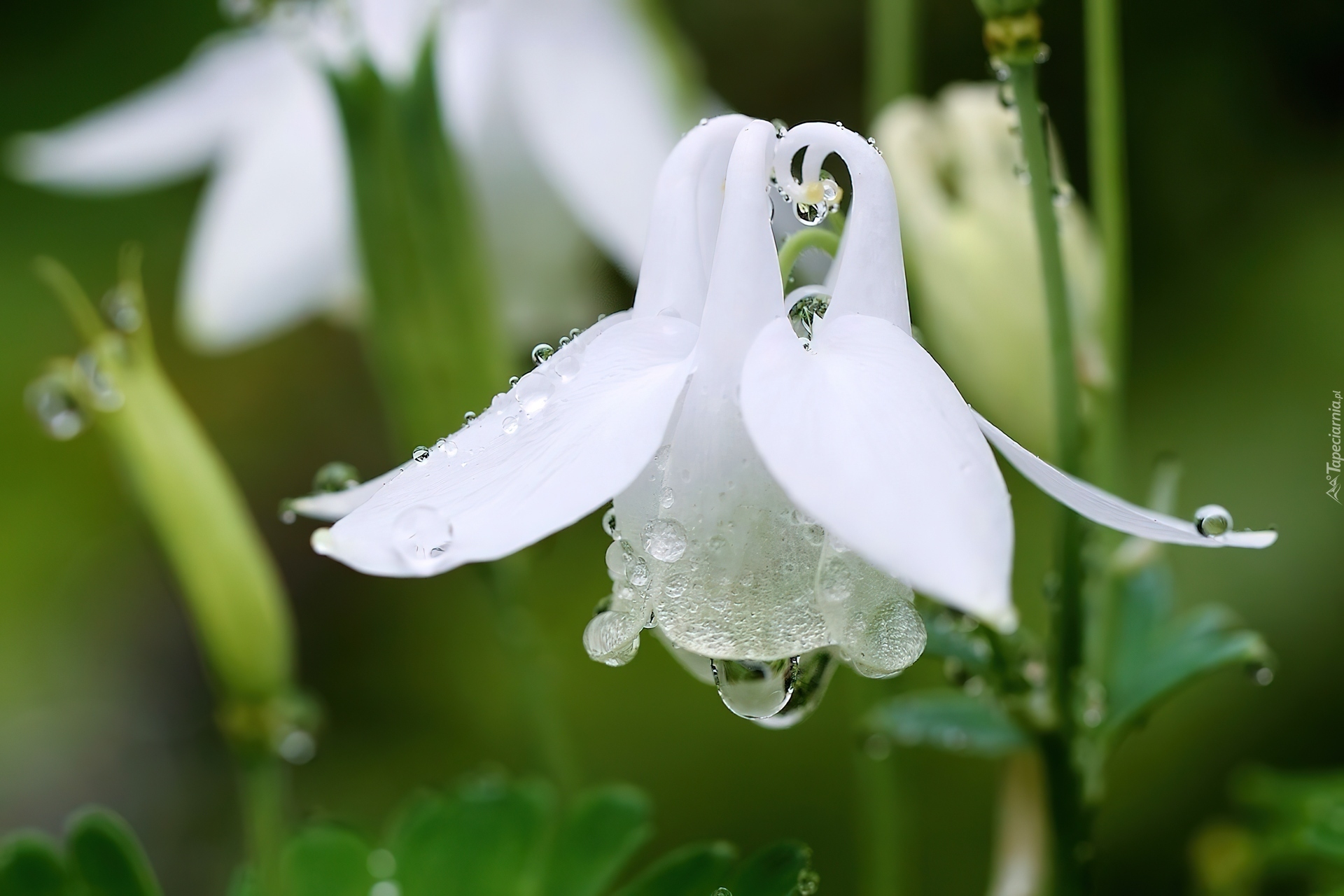 Edytor tapety: Biały, Orlik, Krople, Rosy
