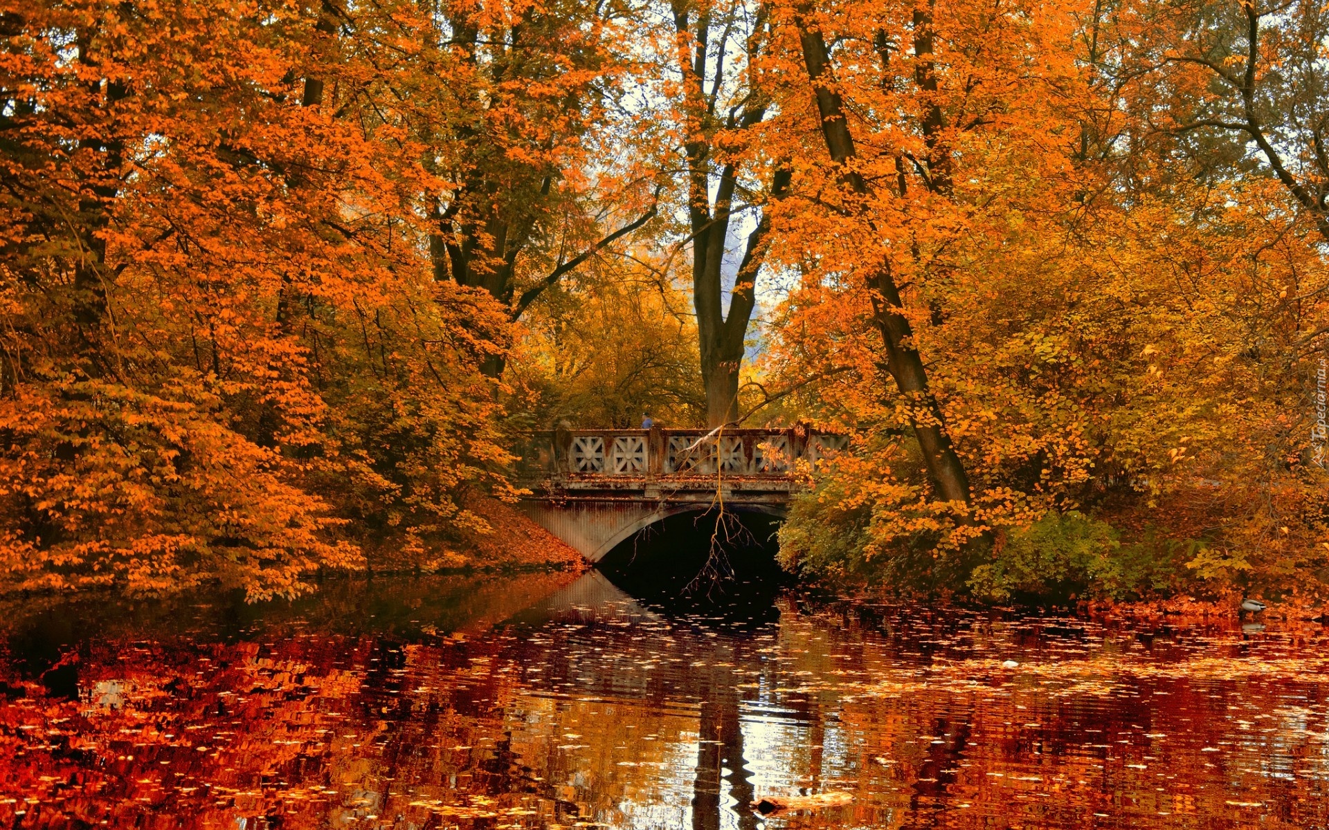 Edytor tapety: Rzeka, Most, Liście, Park, Jesień