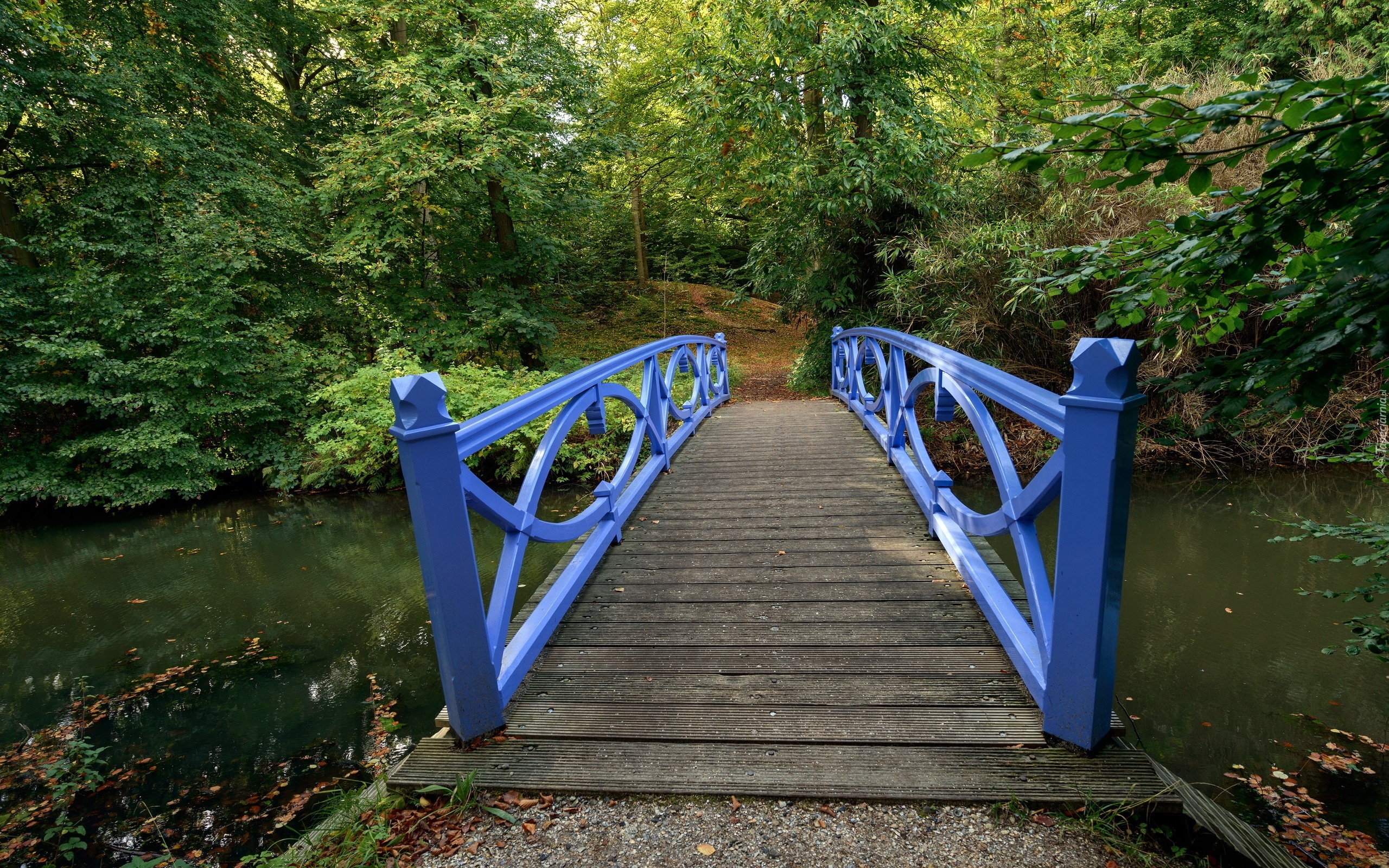 Edytor tapety: Drewniany, Niebieski, Most, Rzeka, Park