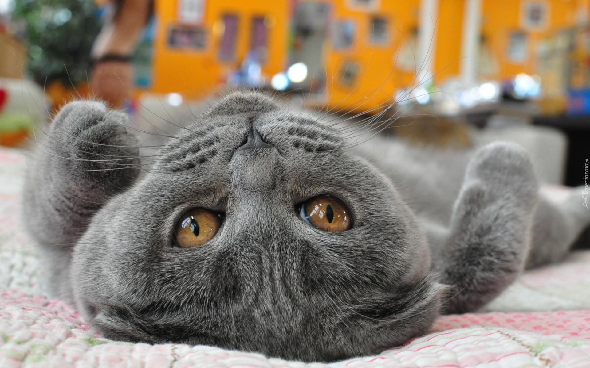 Edytor tapety: Leżący, Siwy, Kot, Oczy, Mordka