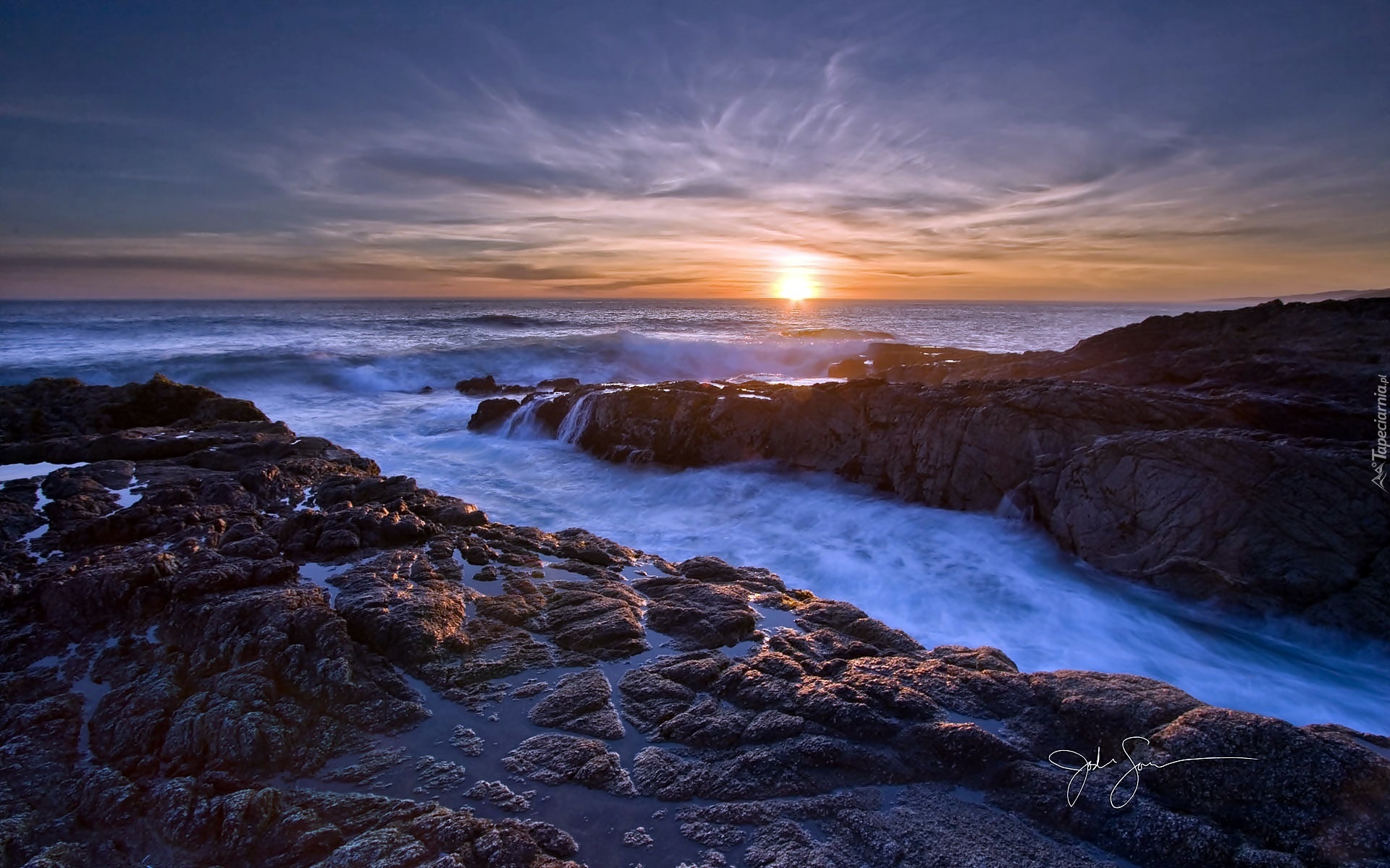 Edytor tapety: Morze, Wybrzeże, Skały, Wschód, Słońca
