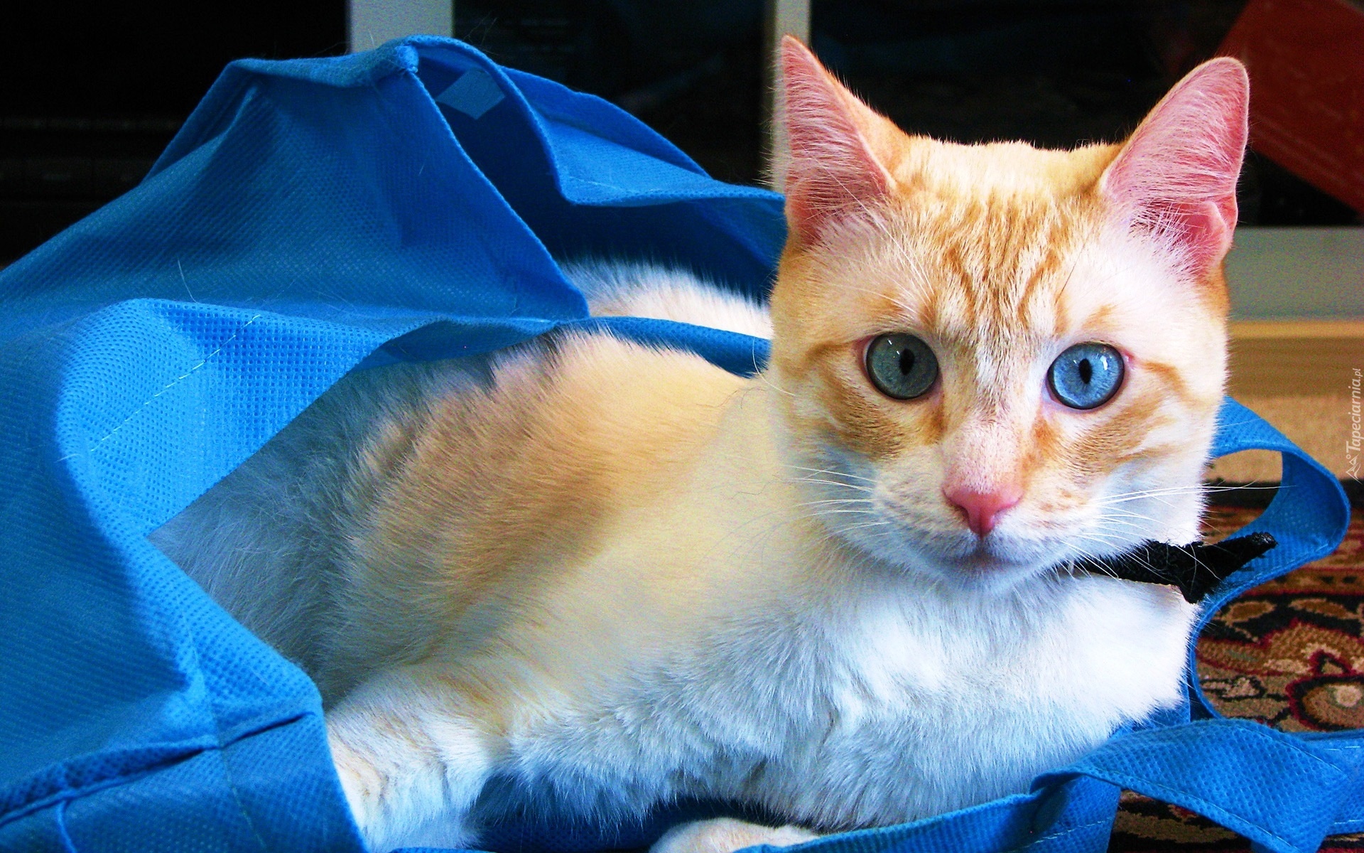 Edytor tapety: Kotek, Niebieskie, Oczy, Torba
