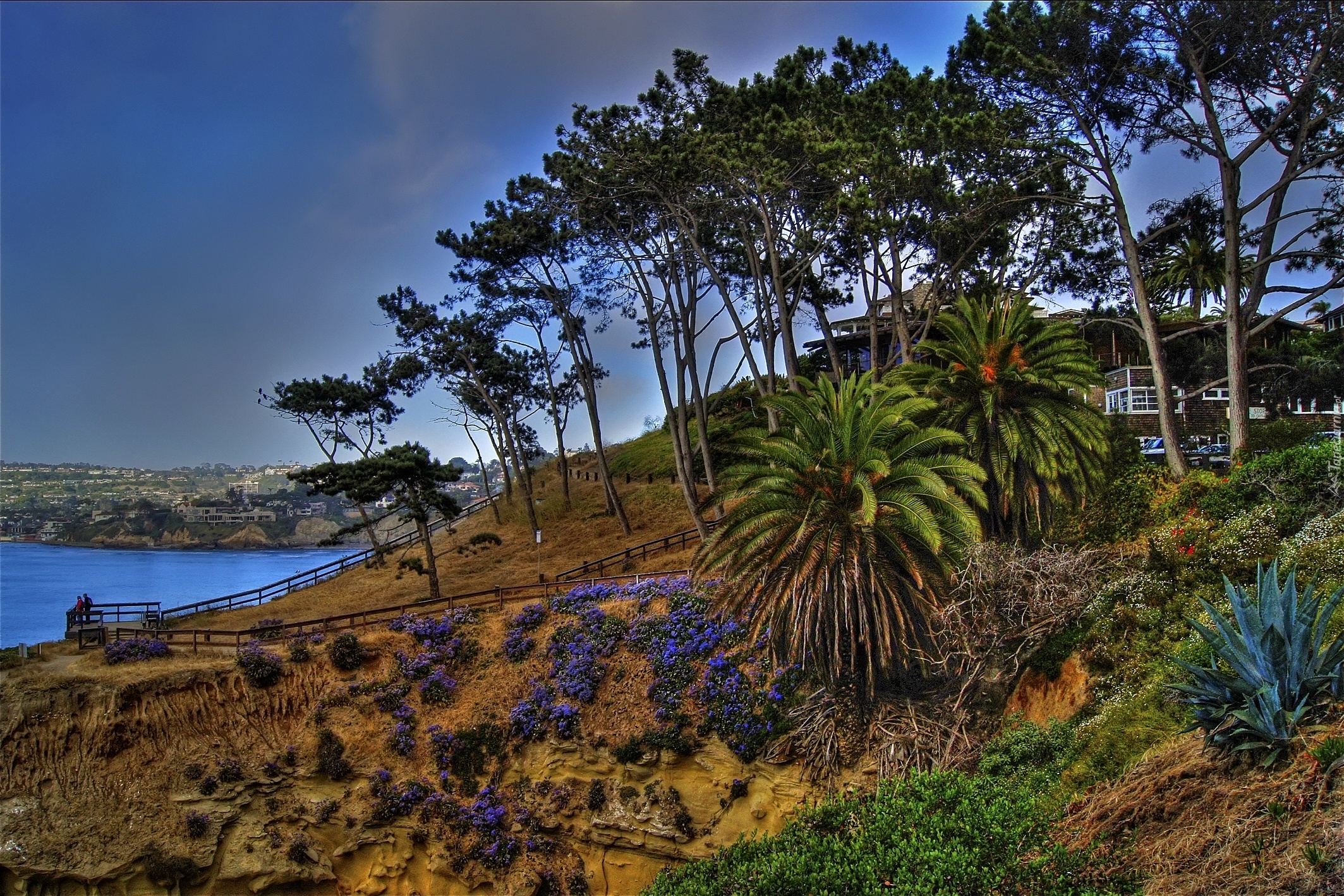 Edytor tapety: Jezioro, Wzgórze, Drzewa, Rośliny