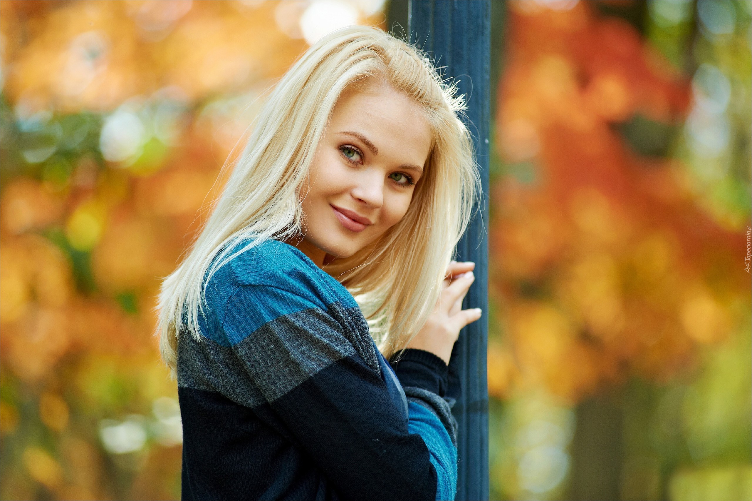 Edytor tapety: Uśmiechnięta, Kobieta, Blondynka, Makijaż