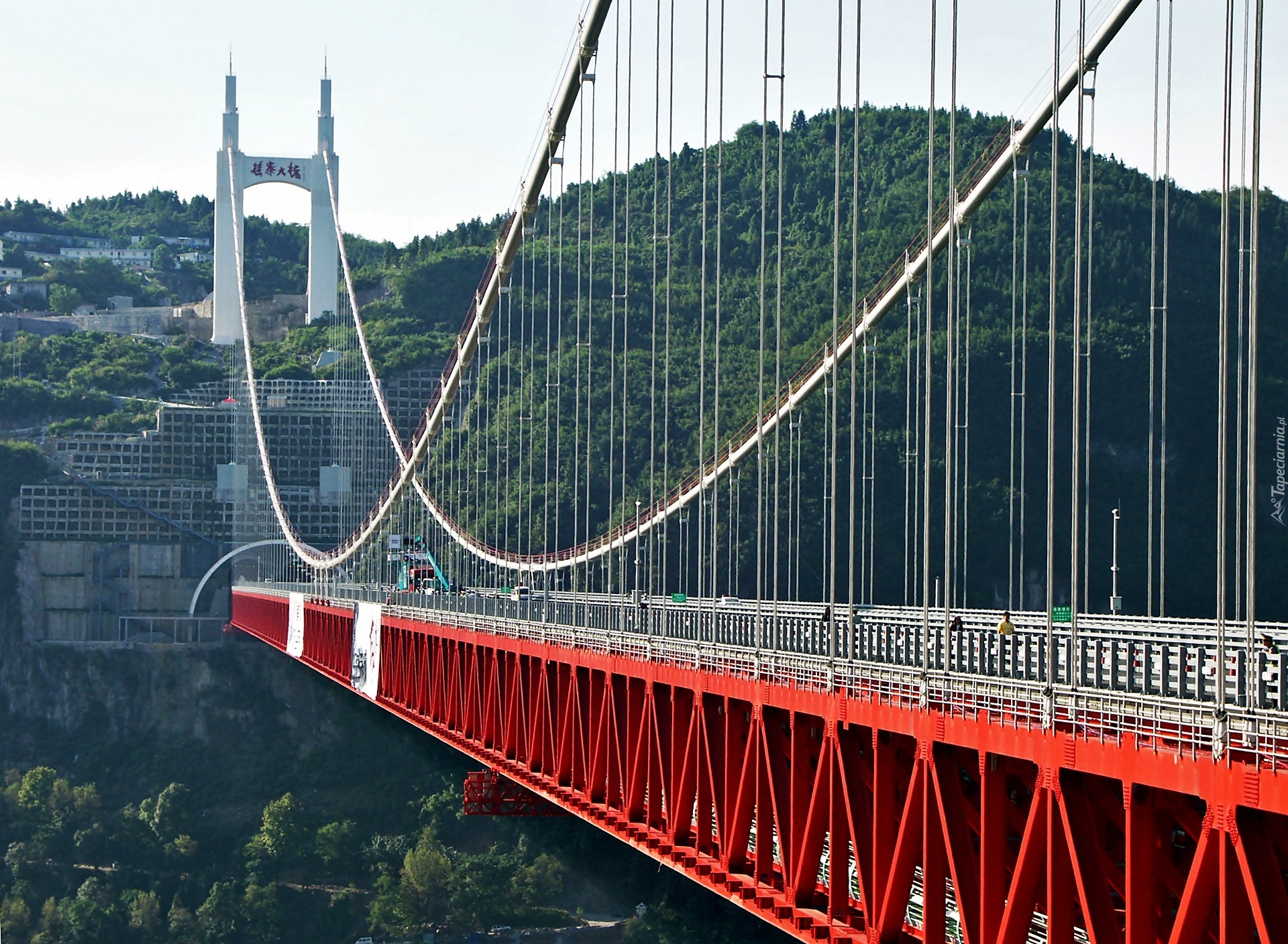 Edytor tapety: Góry, Las, Most, Aizhai, Domy
