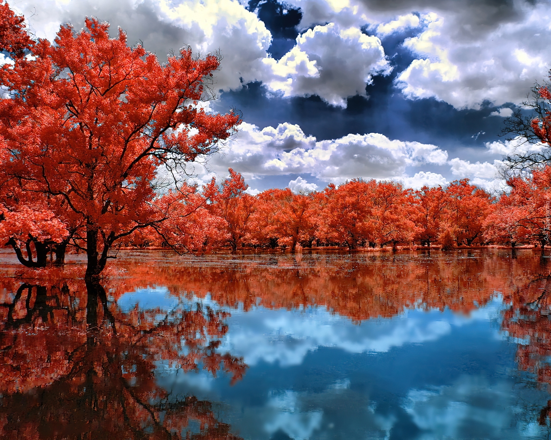 Edytor tapety: Drzewa, Niebo, Jezioro, Odbicie
