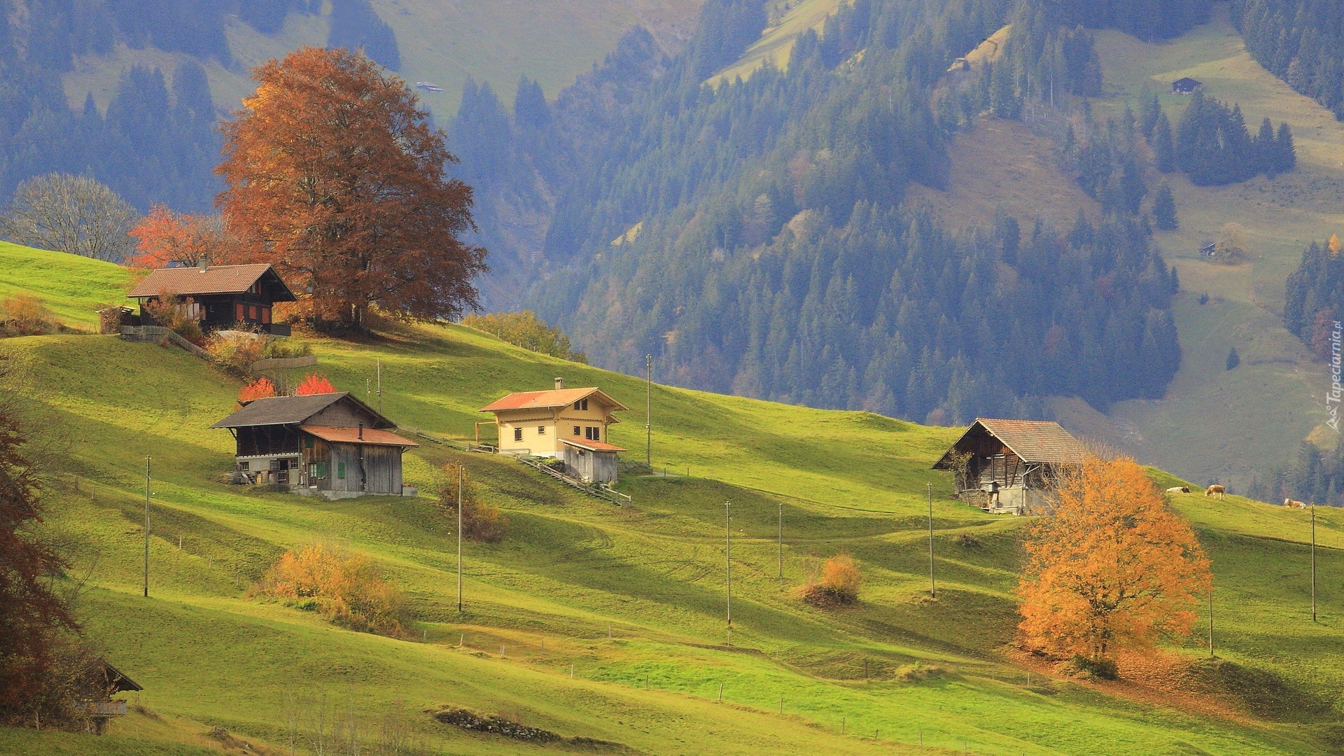 Edytor tapety: Góry, Domy, Drzewa