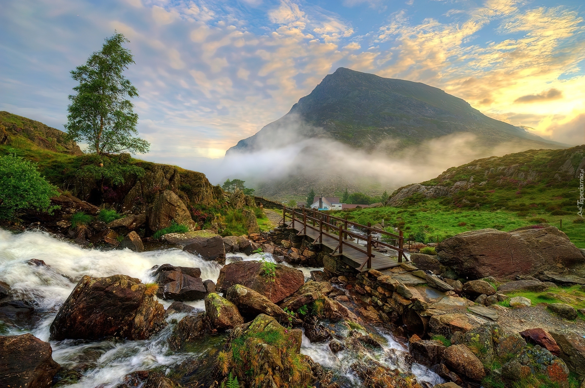 Edytor tapety: Potok ,Góry, Kamienie, Mostek
