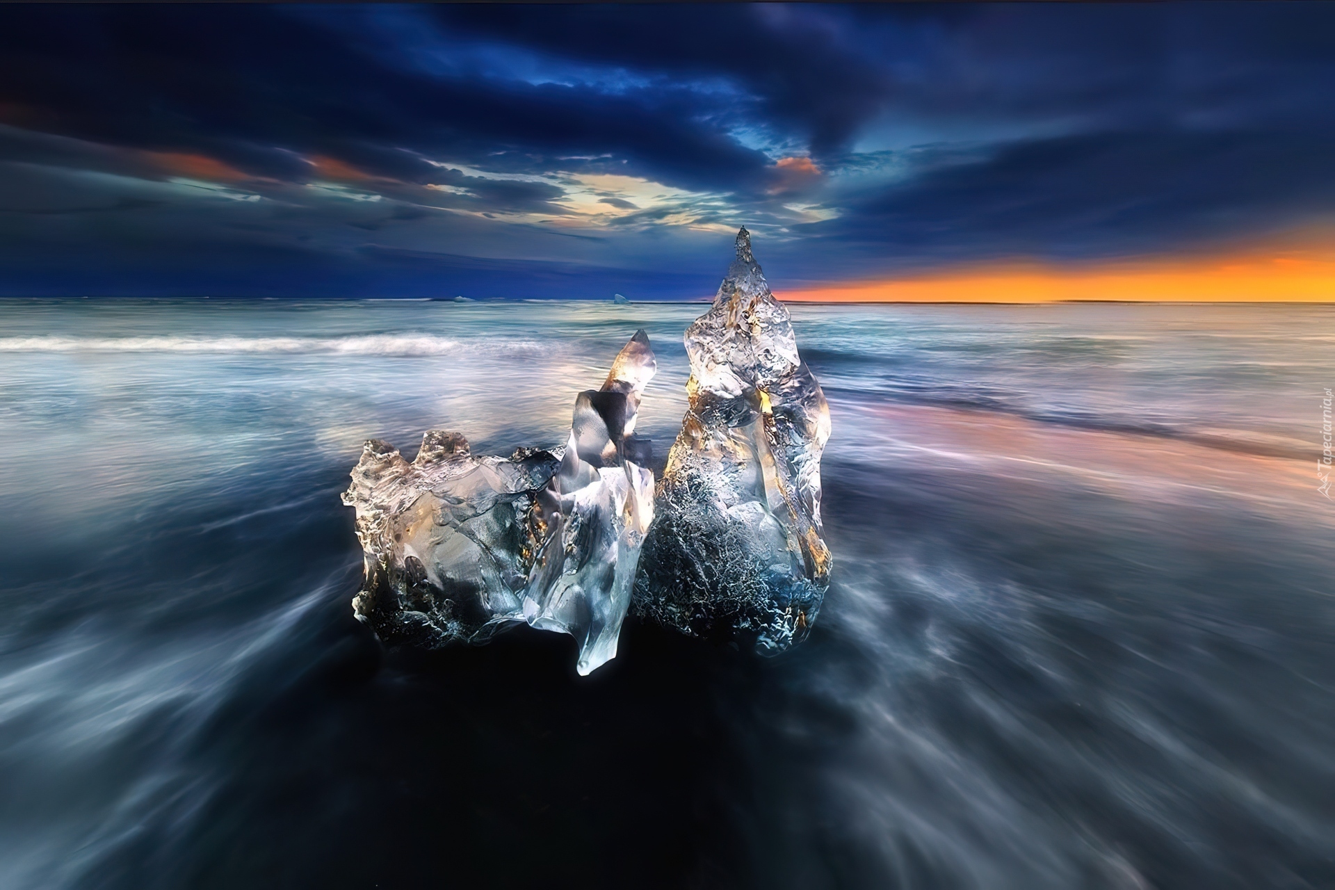 Edytor tapety: Zachód, Słońca, Morze, Bryły, Lodu, Niebo