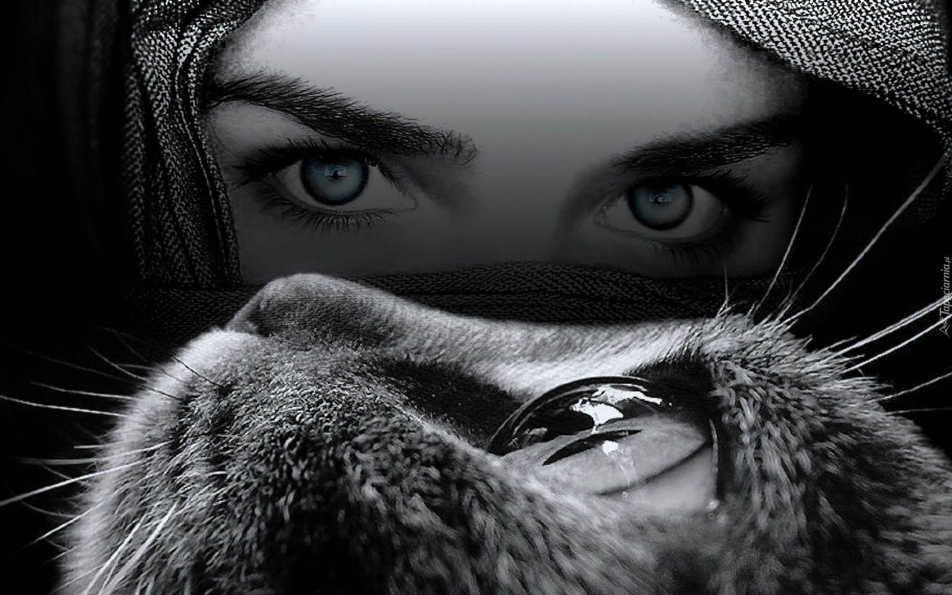 Edytor tapety: Kobieta, Oczy, Kot