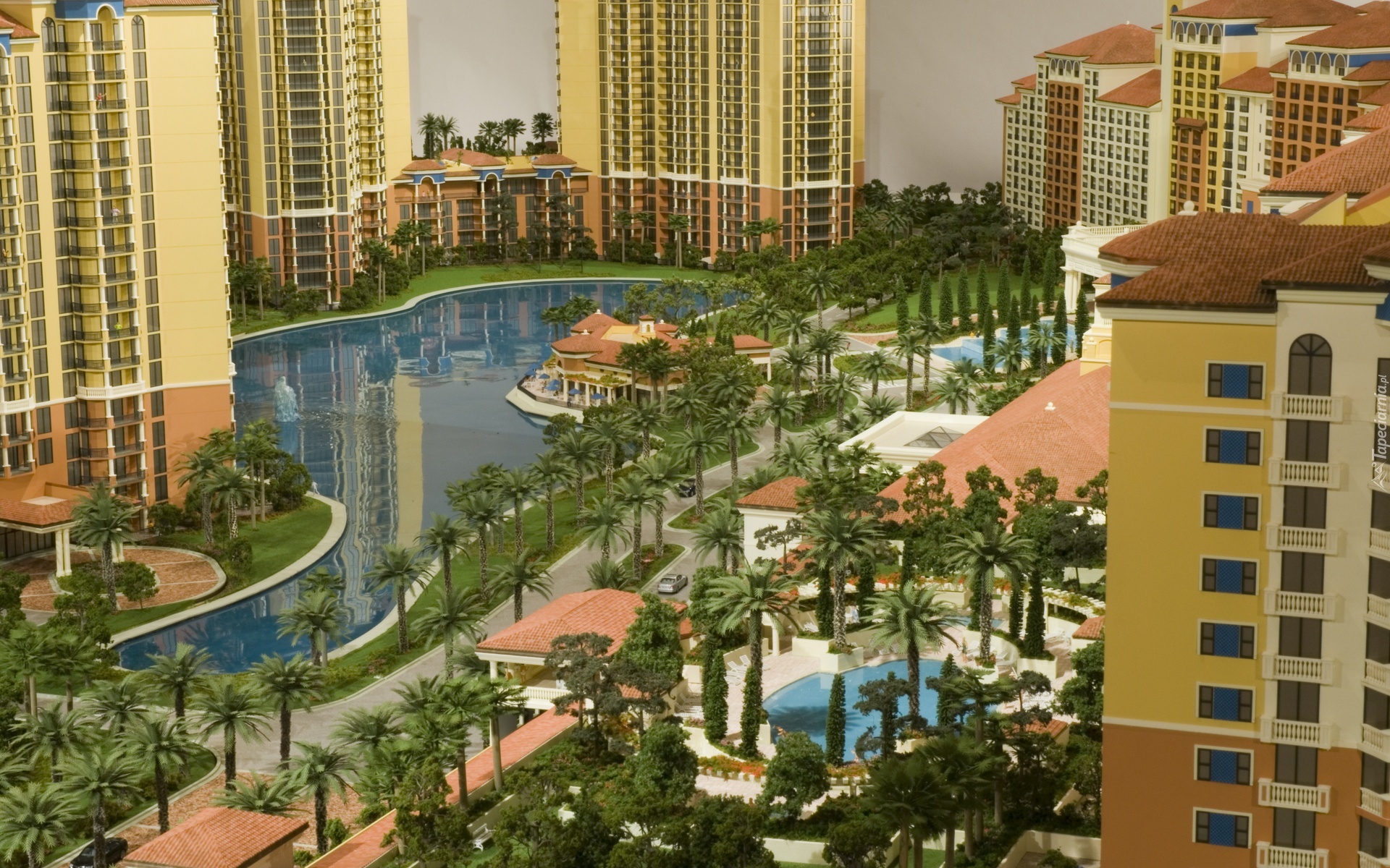 Edytor tapety: Kompleks, Apartamentów, Basen, Palmy