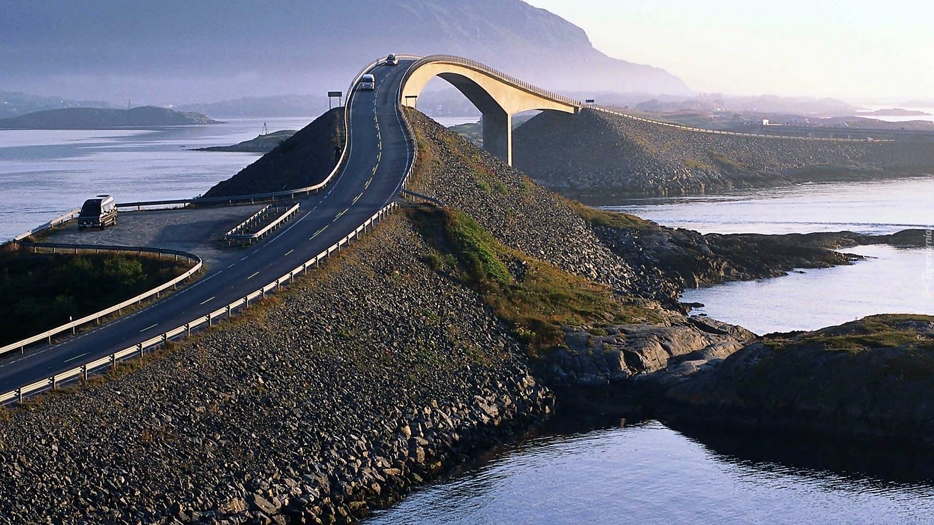Edytor tapety: Droga, Atlantycka, Morze, Wyspy, Most, Storseisundet