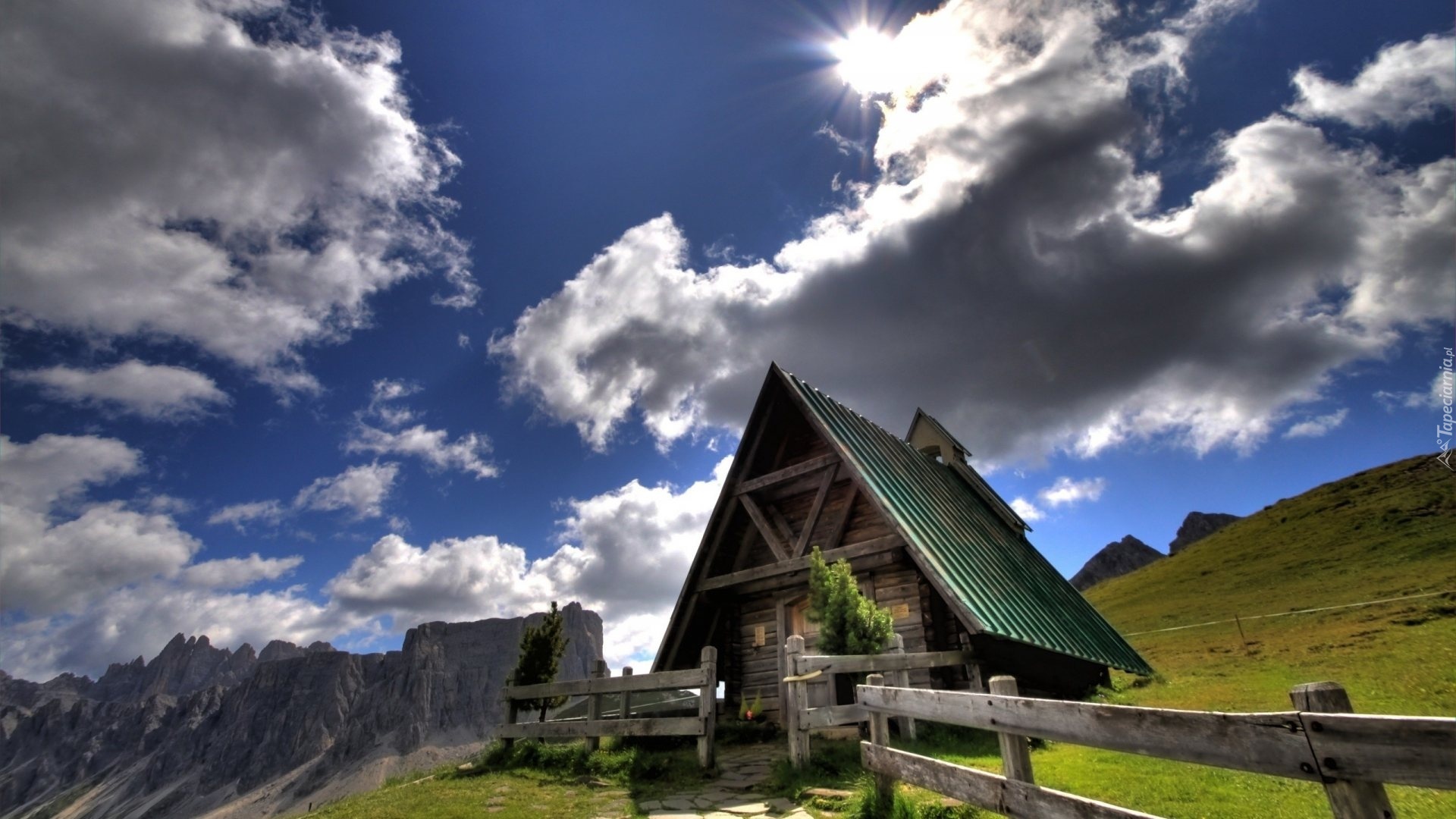 Edytor tapety: Dom, Góry, Chmury