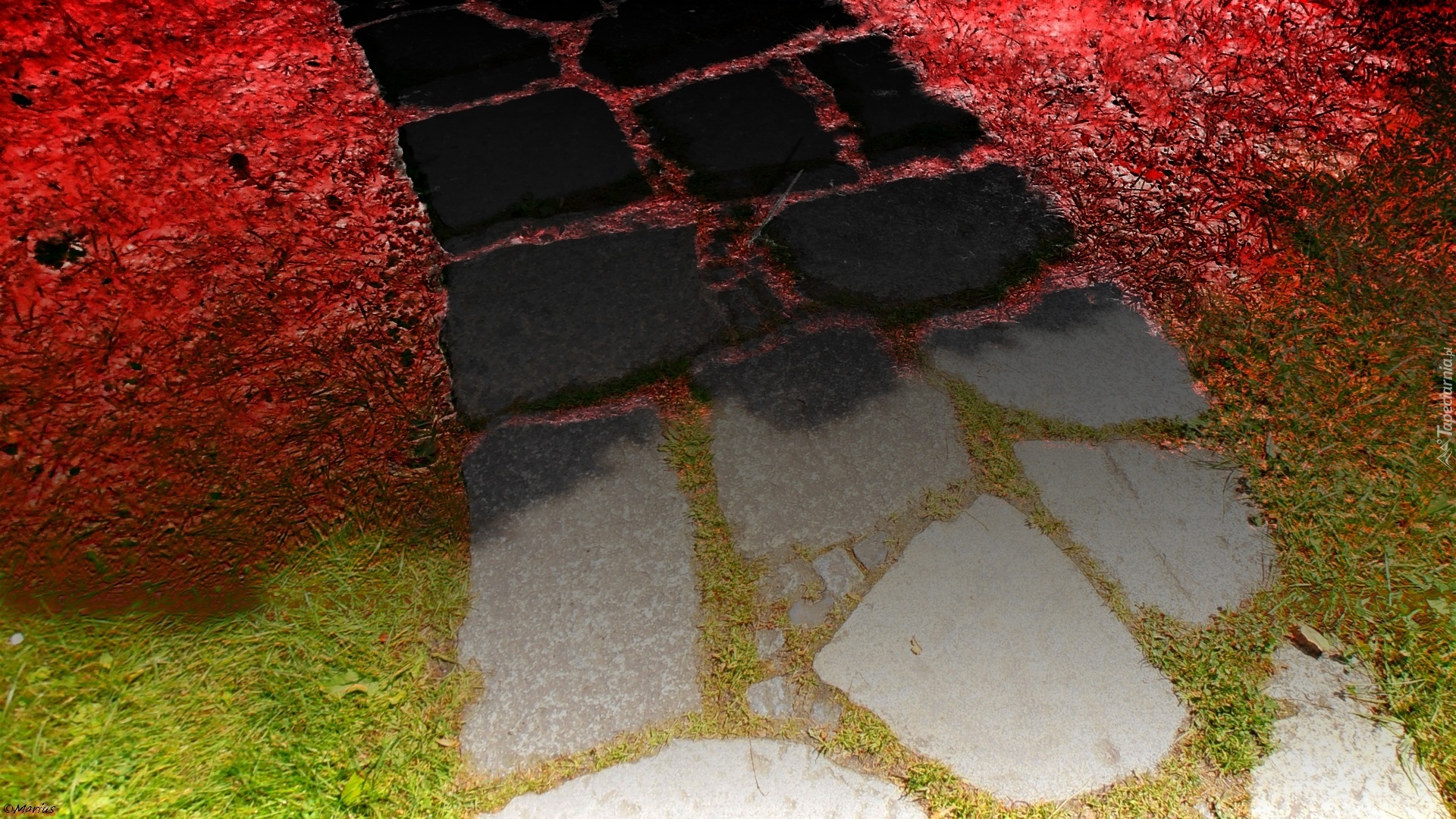 Edytor tapety: Ścieżka, Kamienie, Abstrakcja, Zielona, Czerwona, Trawa