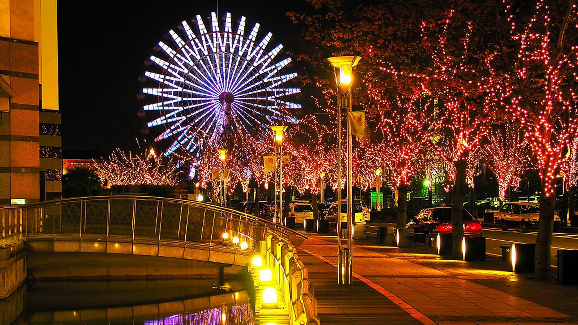 Edytor tapety: Tokio, Nocą, Drzewa, Dekoracje