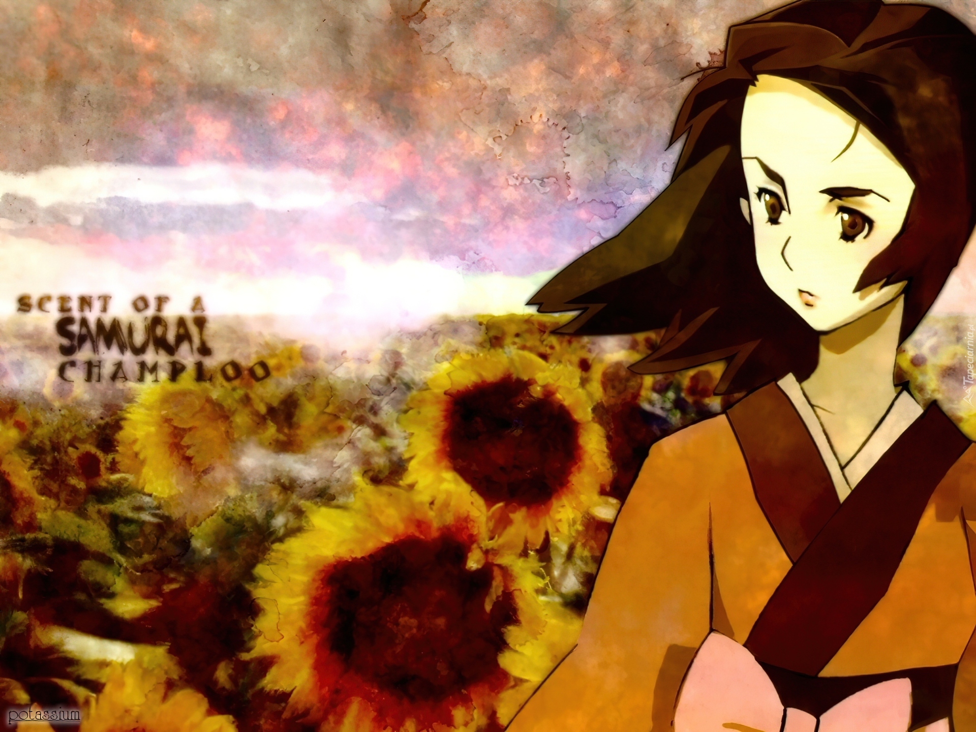 Edytor tapety: Samurai Champloo, dziewczyna, słoneczniki
