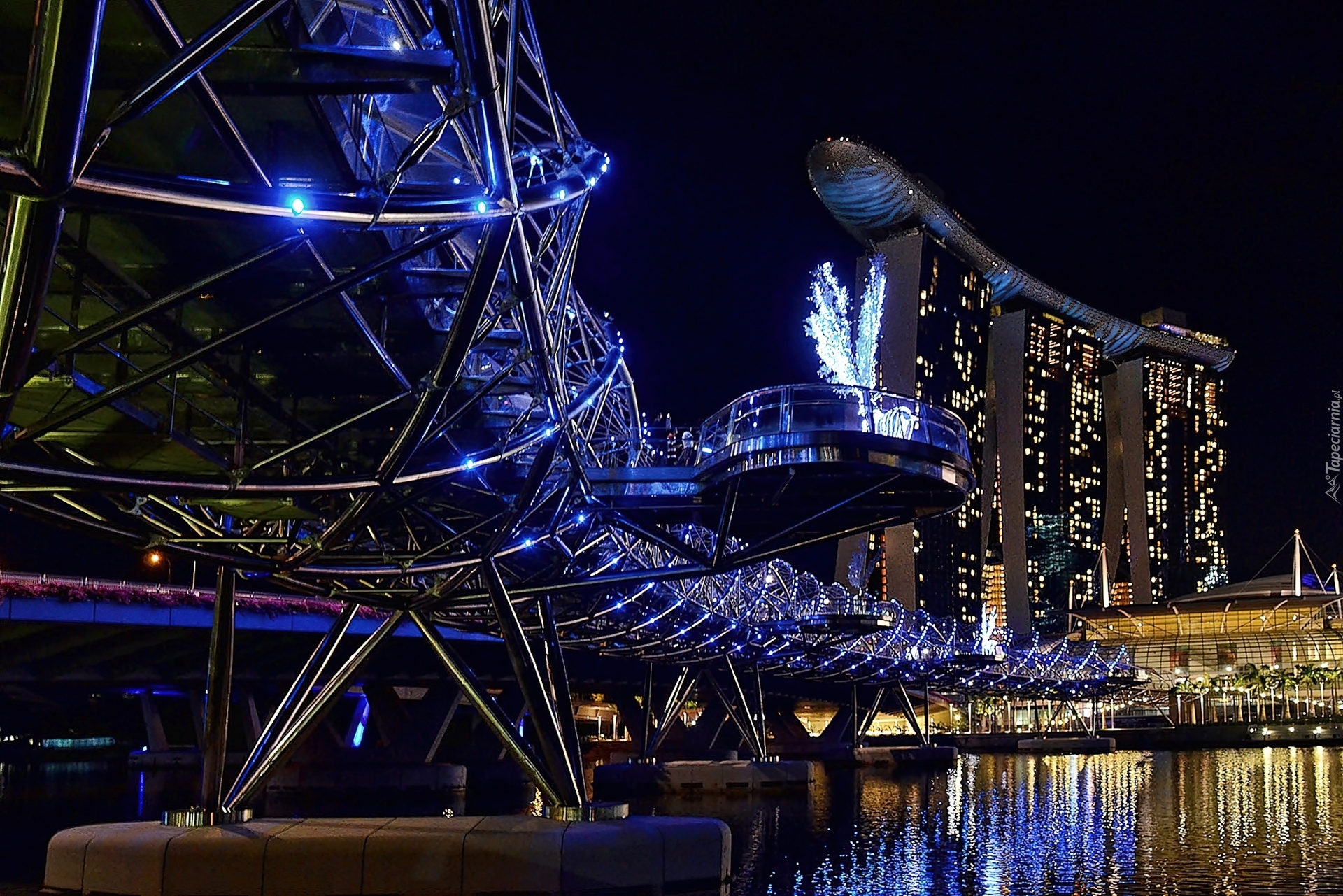 Edytor tapety: Most, Helix, Singapur, Nocą