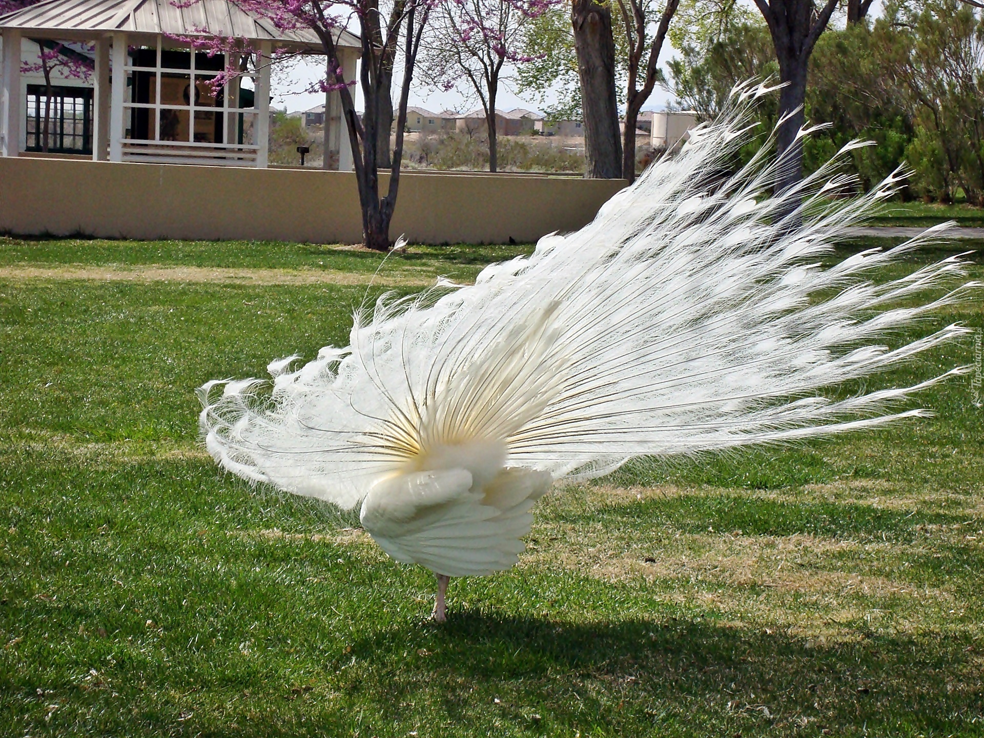 Edytor tapety: Dom, Trawnik, Biały, Paw