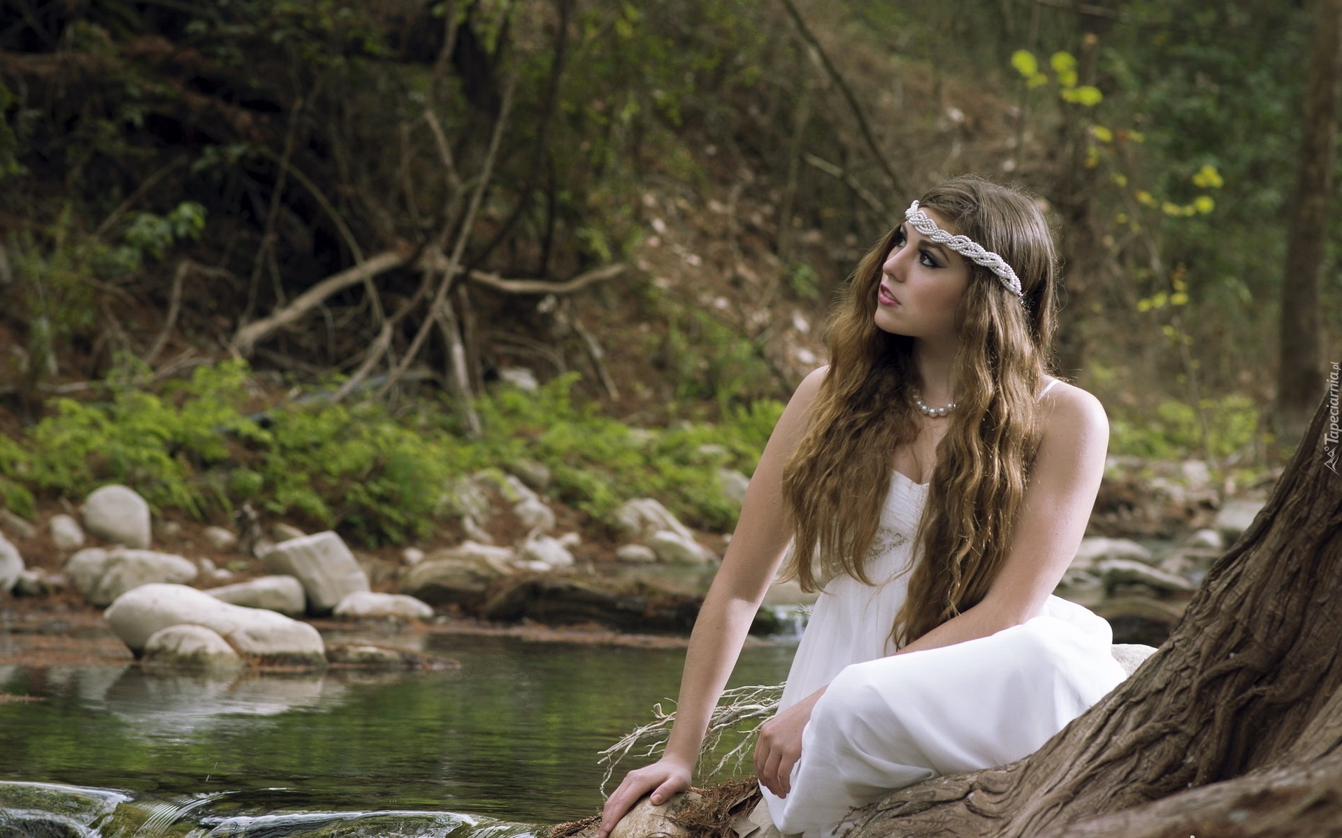 Edytor tapety: Dziewczyna, Strumień, Górski, Kamienie, Las