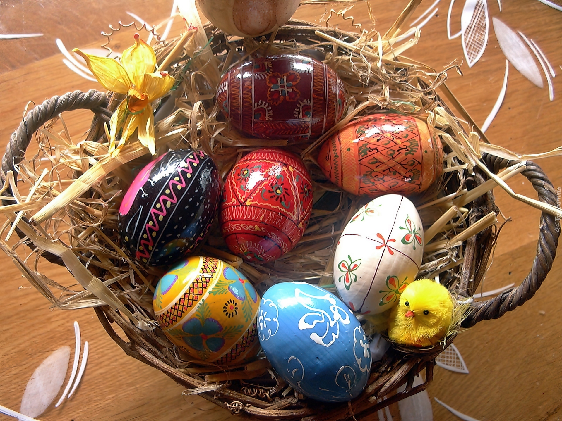 Edytor tapety: Koszyk, Kolorowe, Pisanki