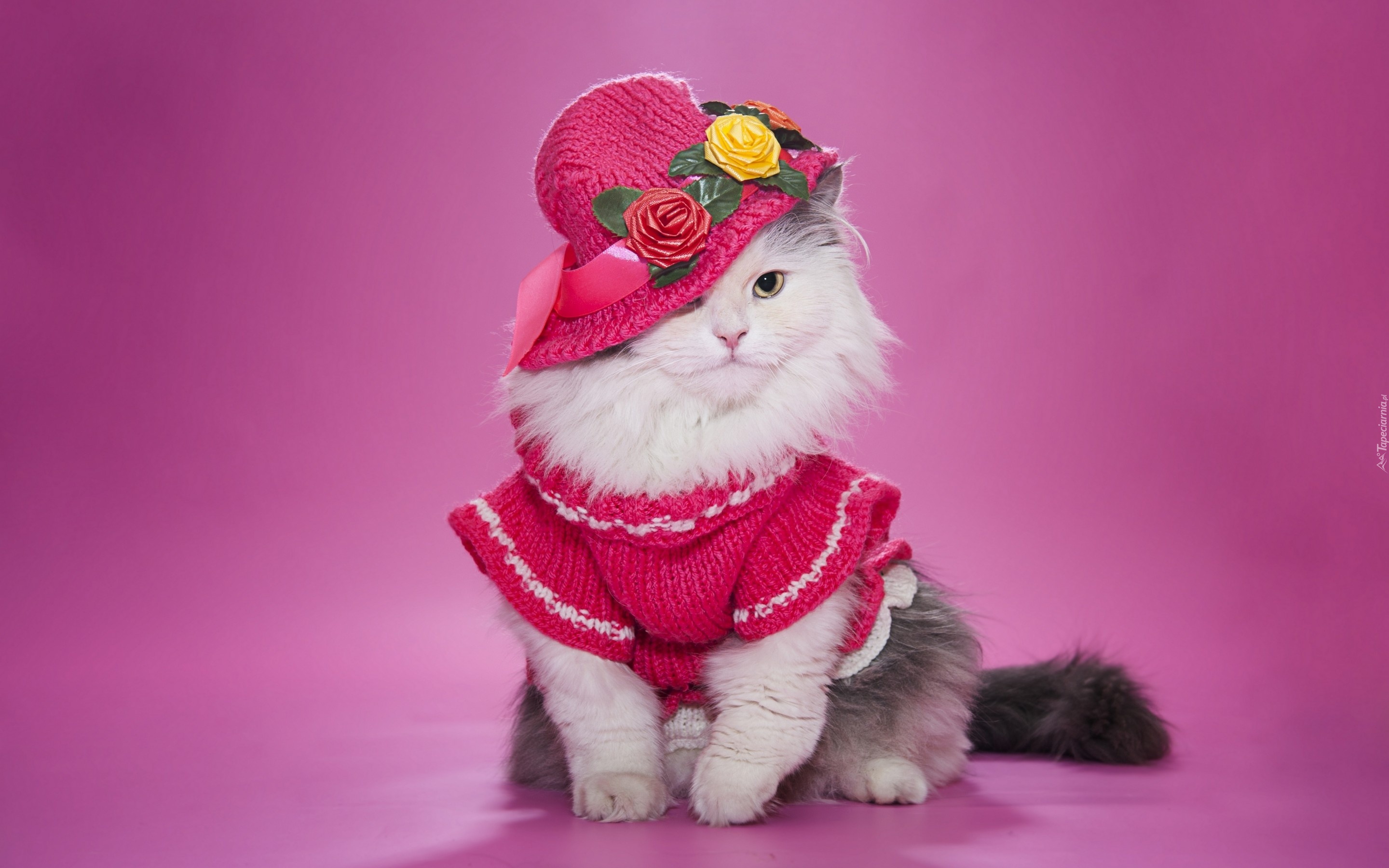 Edytor tapety: Kotek, Ubranko, Kapelusz
