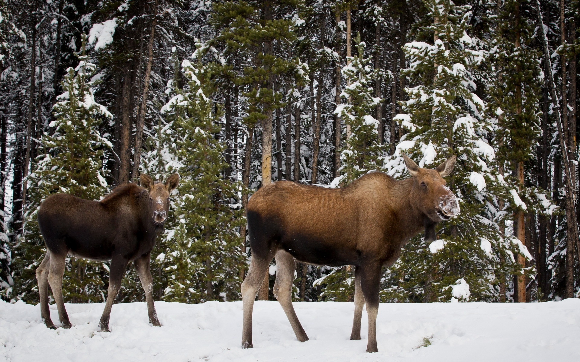 Edytor tapety: Dwa, Łosie, Las, Śnieg