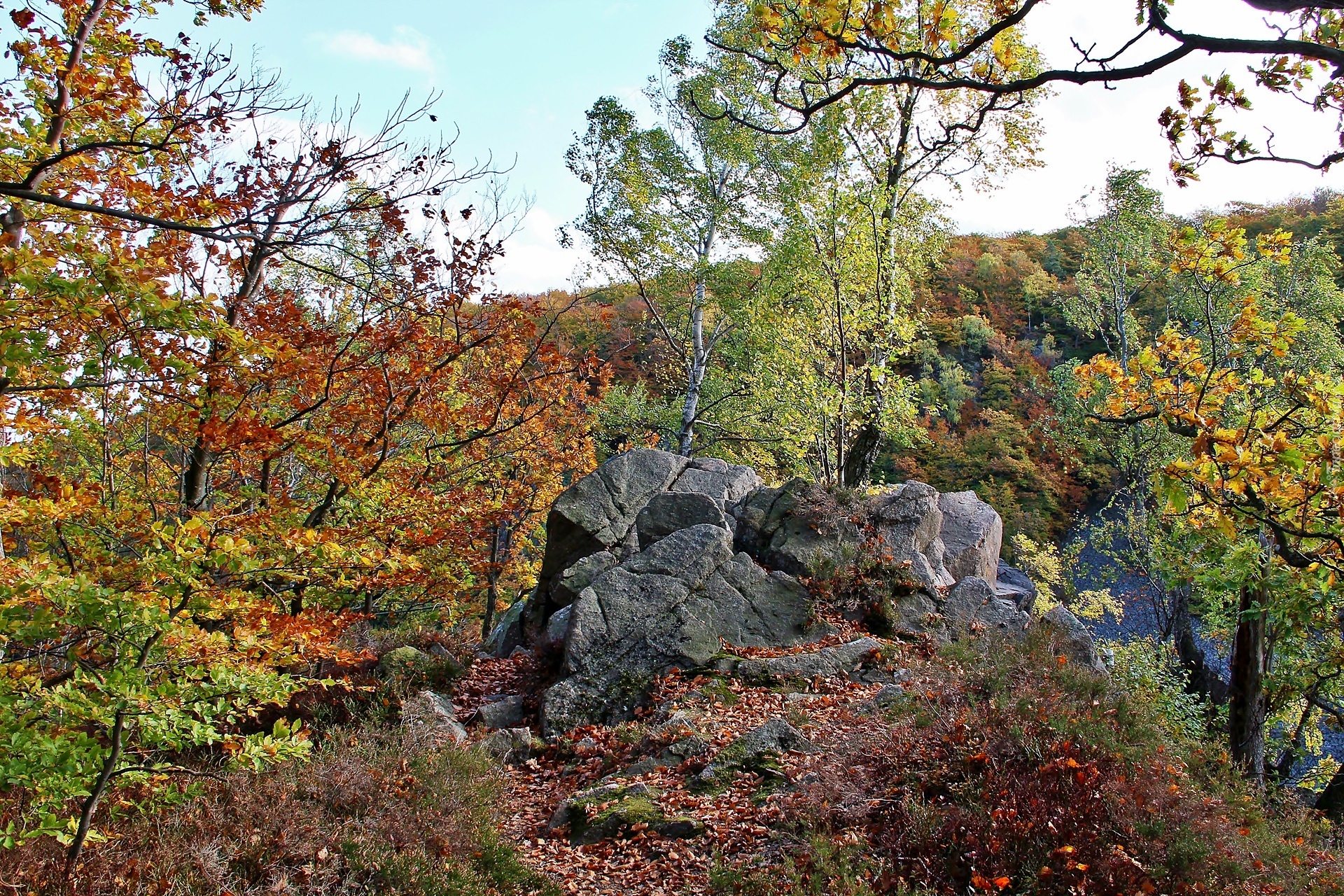 Edytor tapety: Jesień, Las, Skały, Opadłe, Liście
