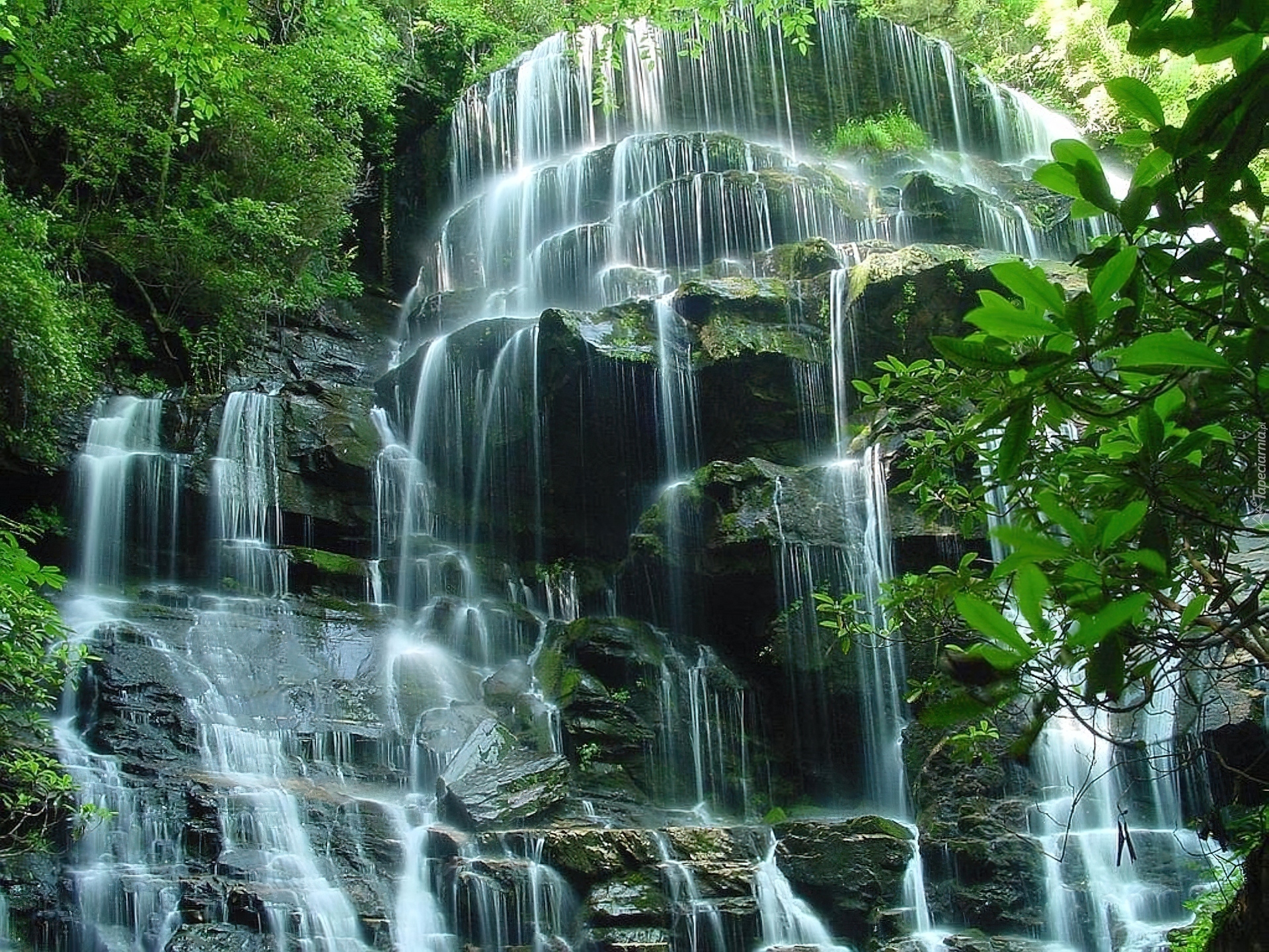 Edytor tapety: Wodospad, Skały