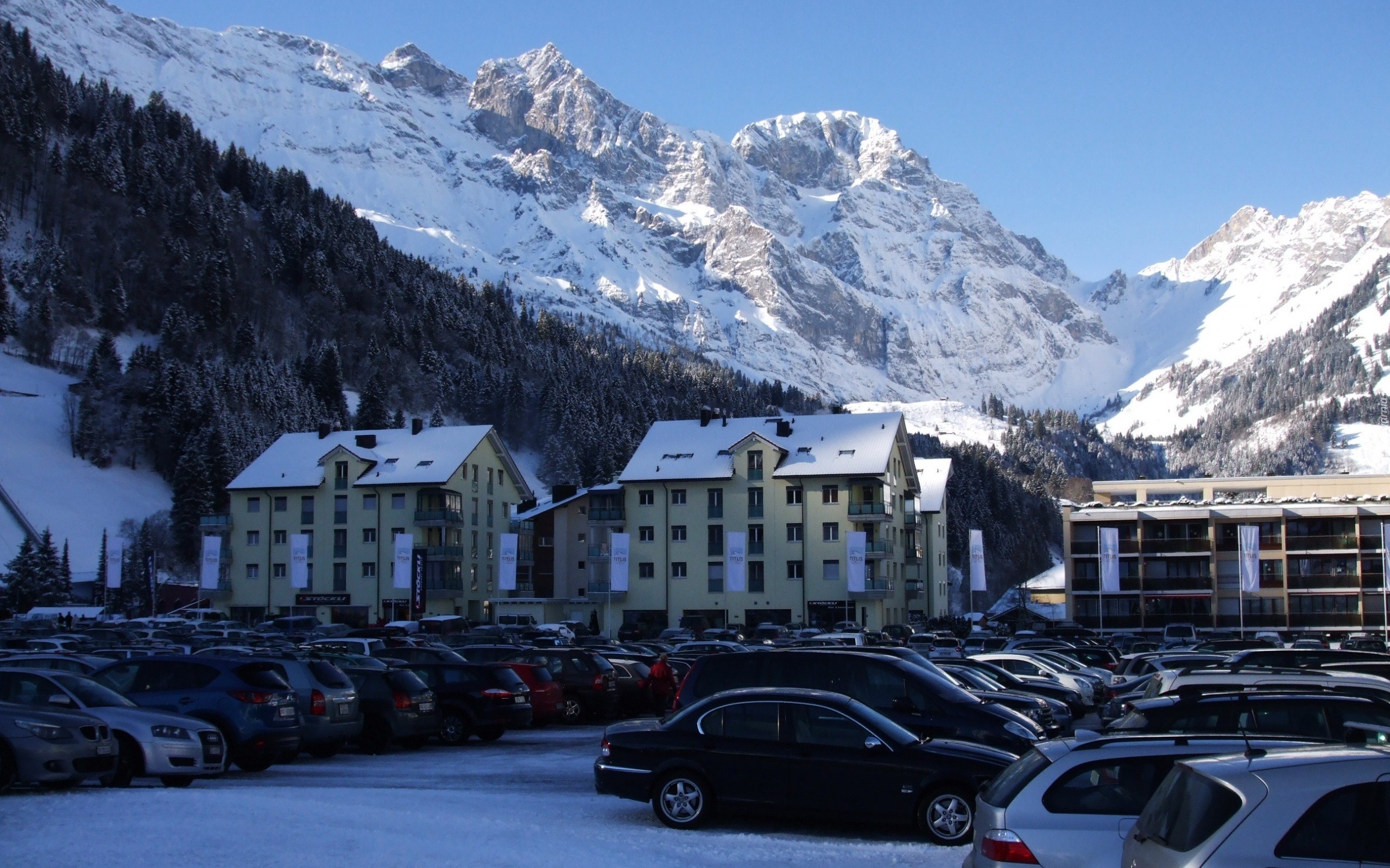 Edytor tapety: Góry, Lasy, Miasteczko, Samochody, Kurort, Zima