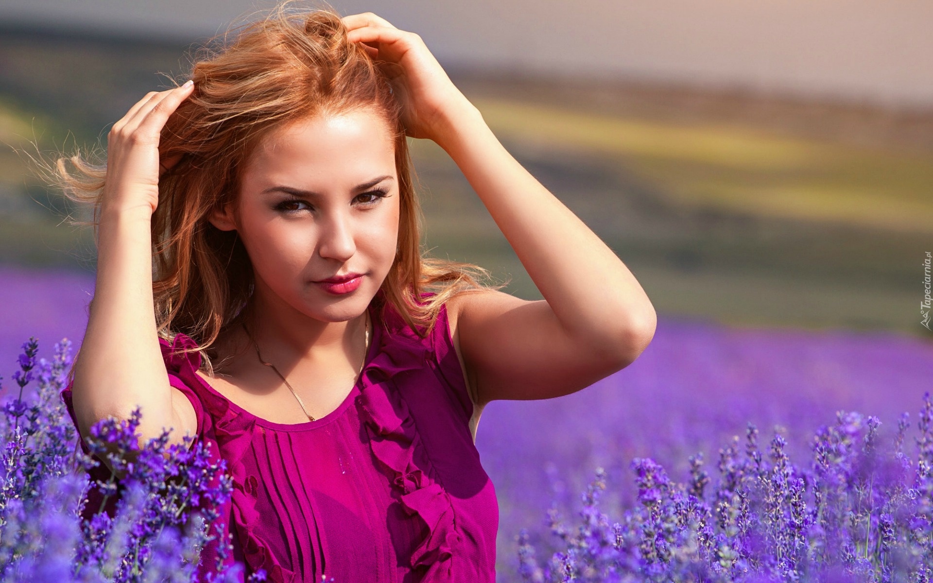 Edytor tapety: Młoda, Dziewczyna, Łąka, Lawenda