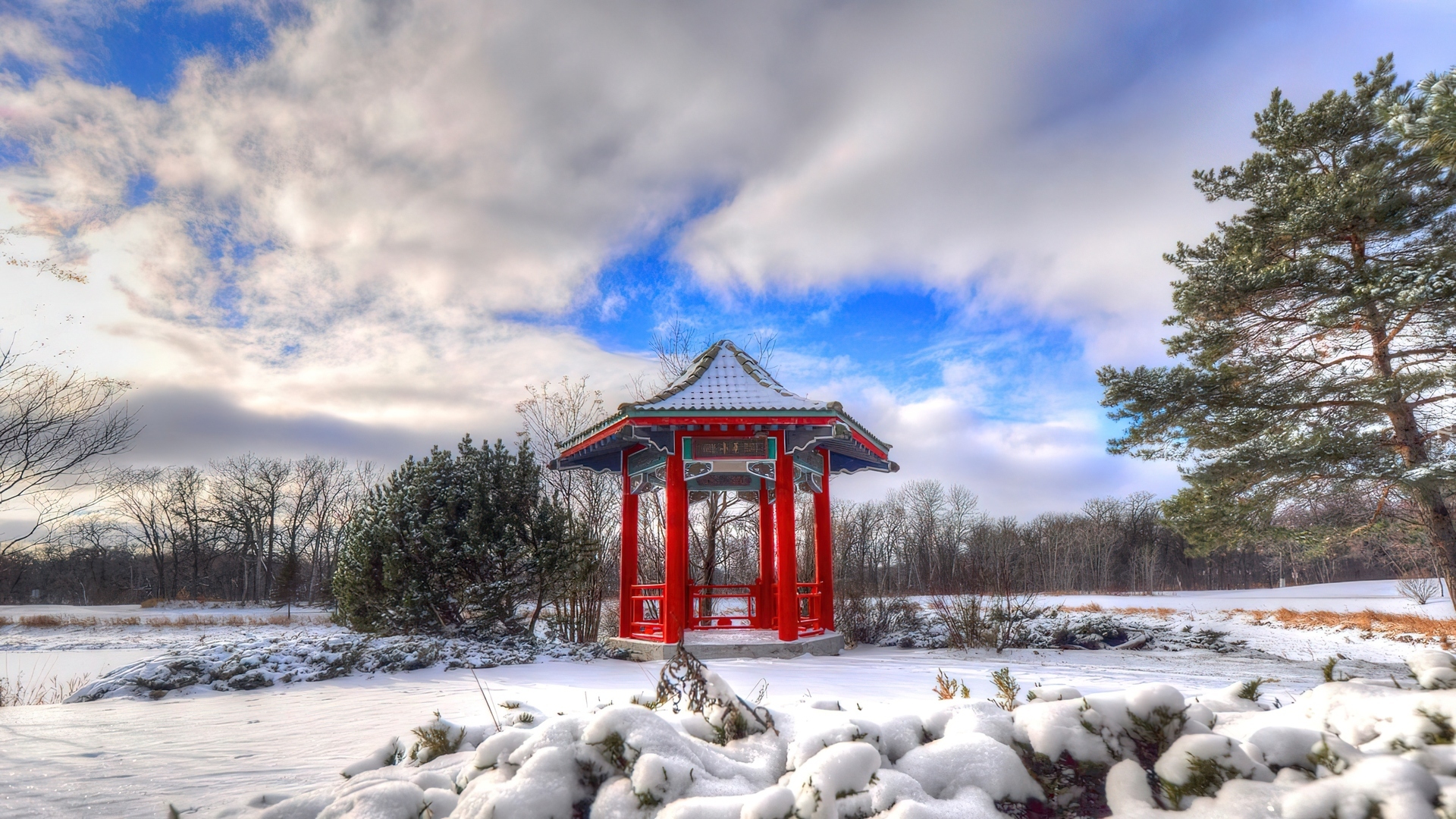 Edytor tapety: Park, Drzewa, Altanka, Zima