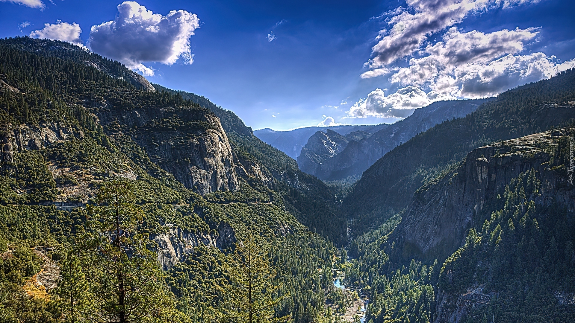 Edytor tapety: Stany Zjednoczone, Stan Kalifornia, Park Narodowy Yosemite, Rzeka, Góry, Las