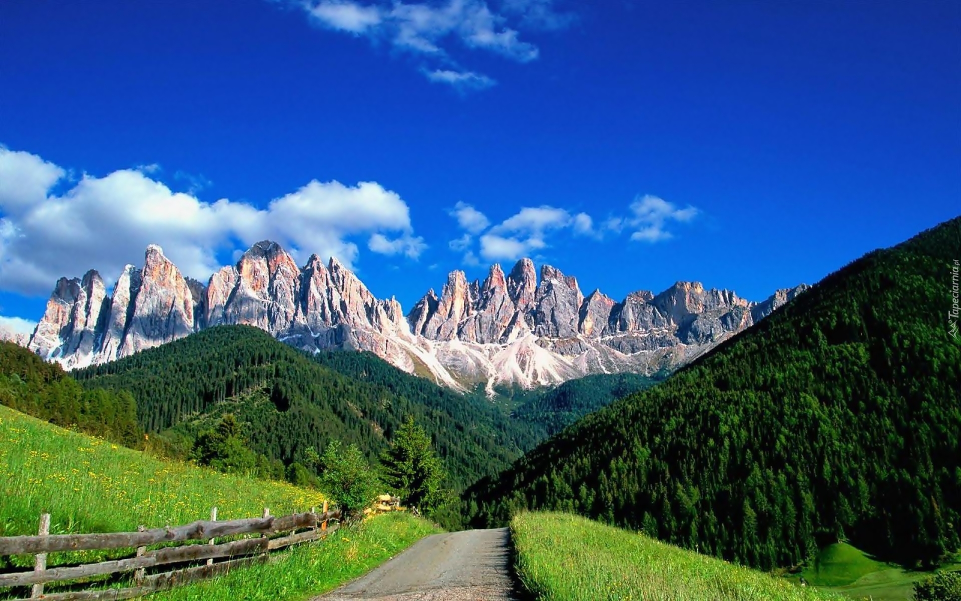 Edytor tapety: Chmury, Góry, Droga, Łąka, Niebo
