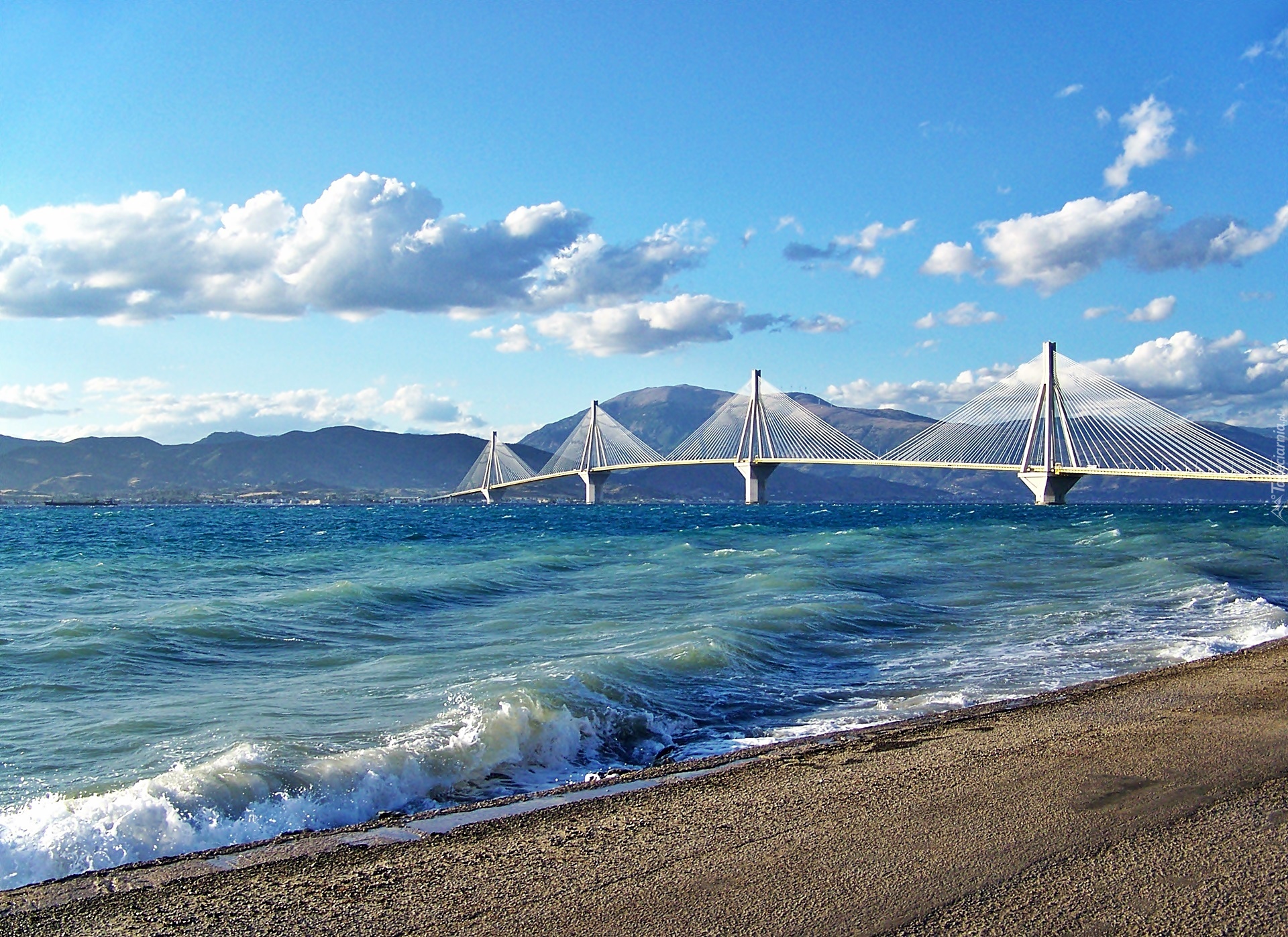Edytor tapety: Morze, Plaża, Obłoki, Most, Rio, Antirio