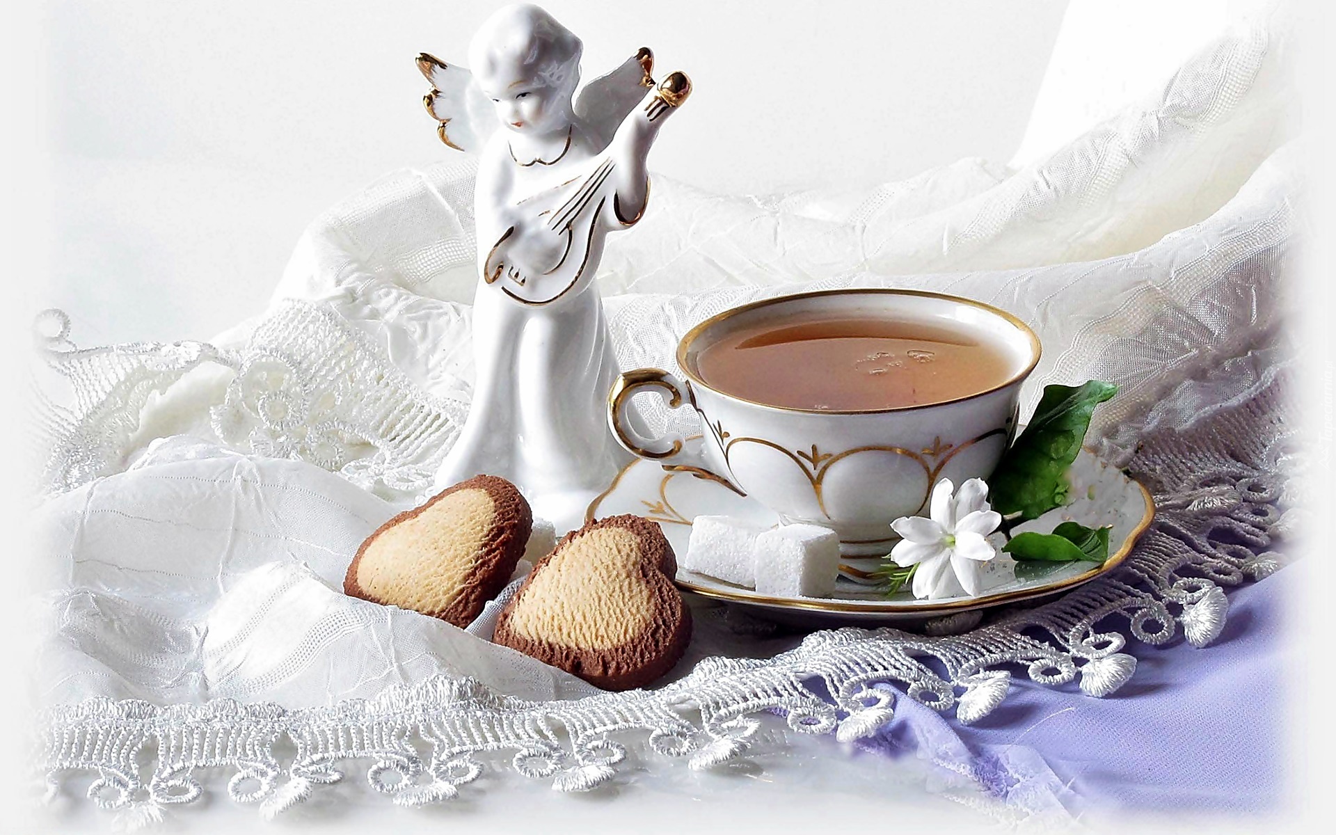 Edytor tapety: Herbata, Ciasteczka, Kwiatek, Porcelana, Figurka, Aniołka