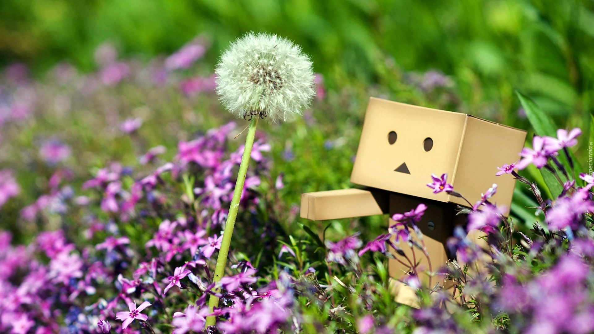 Edytor tapety: Lato, Łąka, Różowe, Kwiatki, Dmuchawiec, Danbo, Rozmycie