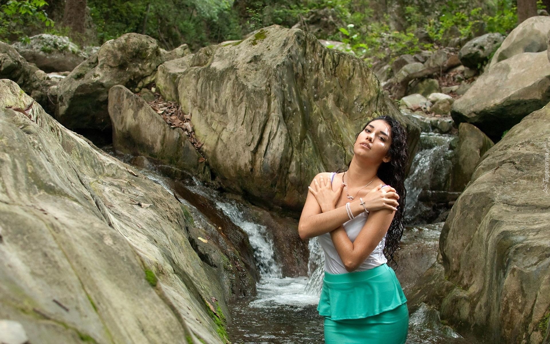 Edytor tapety: Biżuteria, Kobieta, Skały, Wodospad