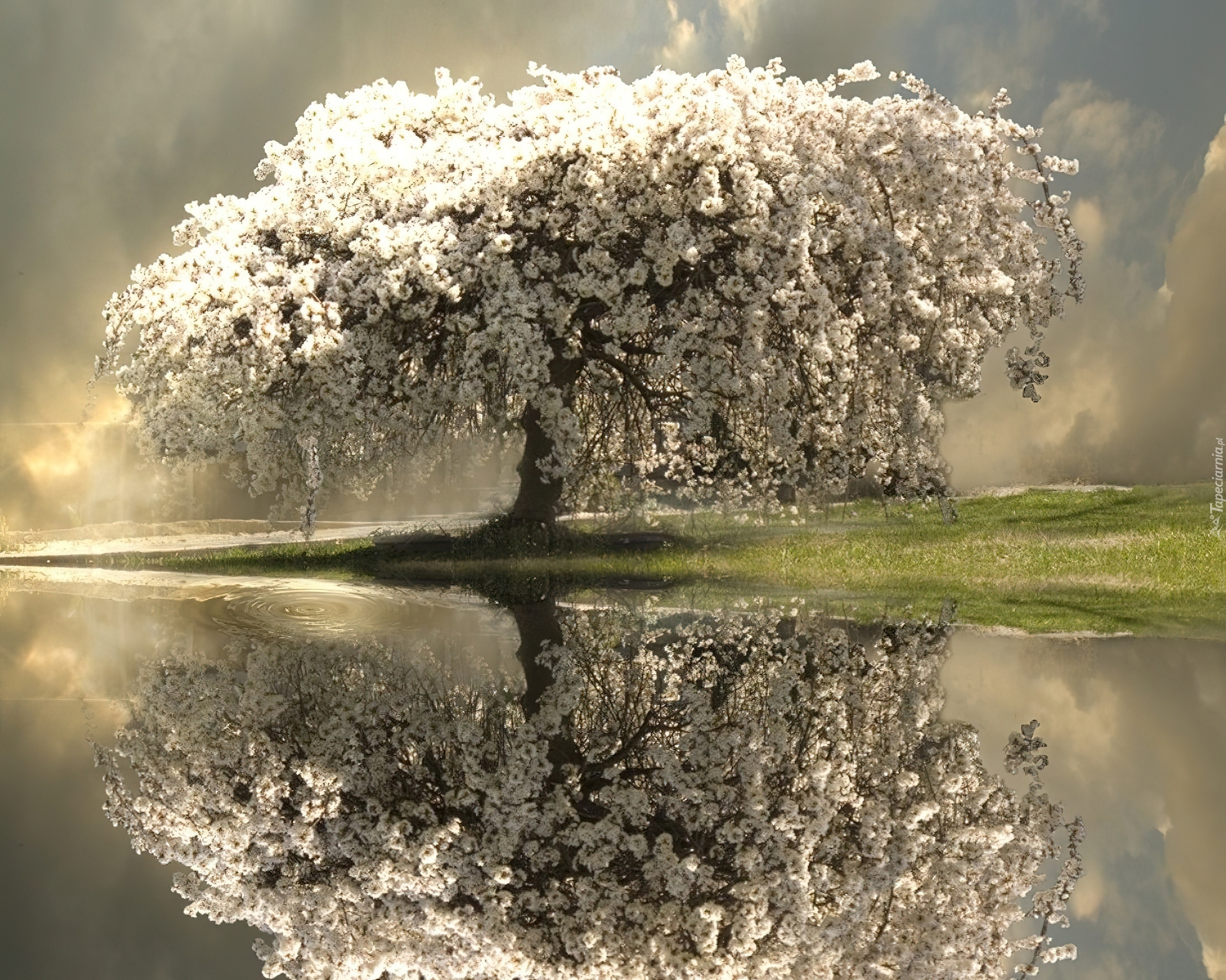 Edytor tapety: Wiosna, Kwitnące, Drzewo, Odbicie
