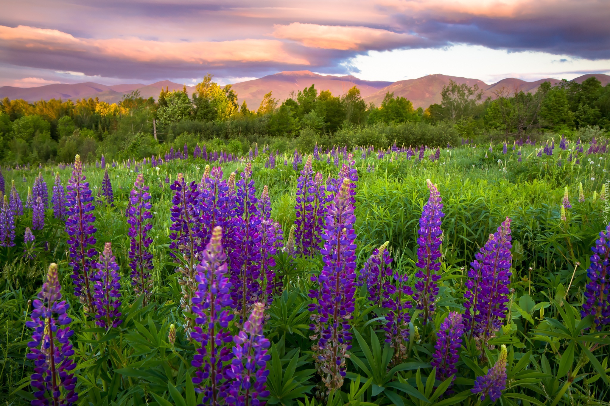 Edytor tapety: Łubin, Góry, Drzewa, Niebo