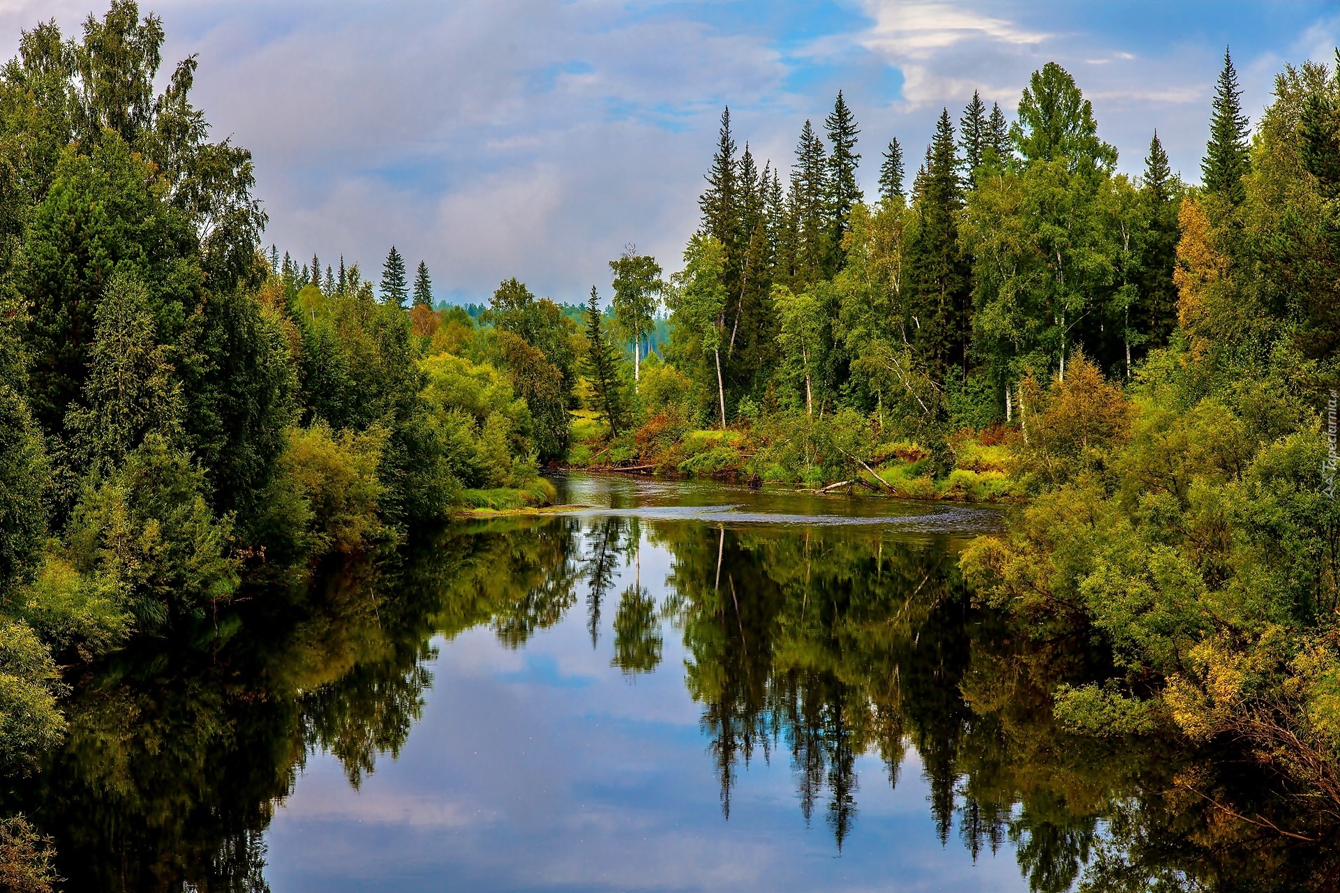 Edytor tapety: Jesień, Las, Jezioro, Obłoki, Odbicie