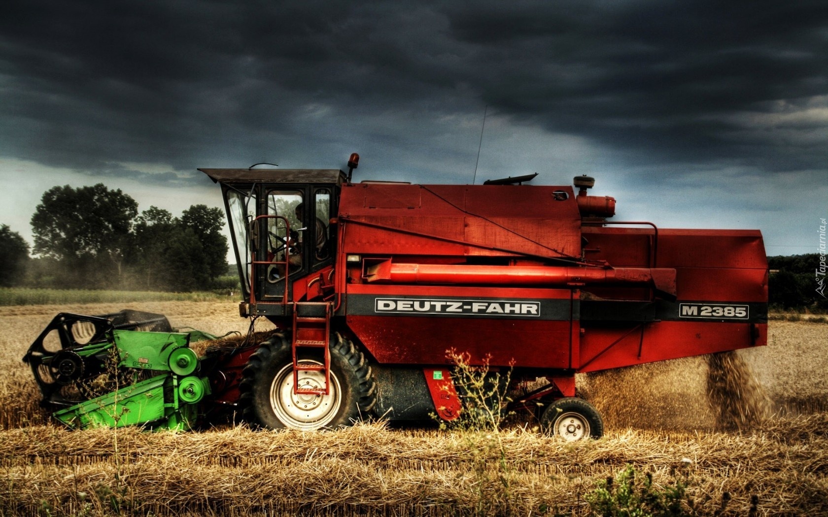 Edytor tapety: Kombajn, Pole, Drzewa