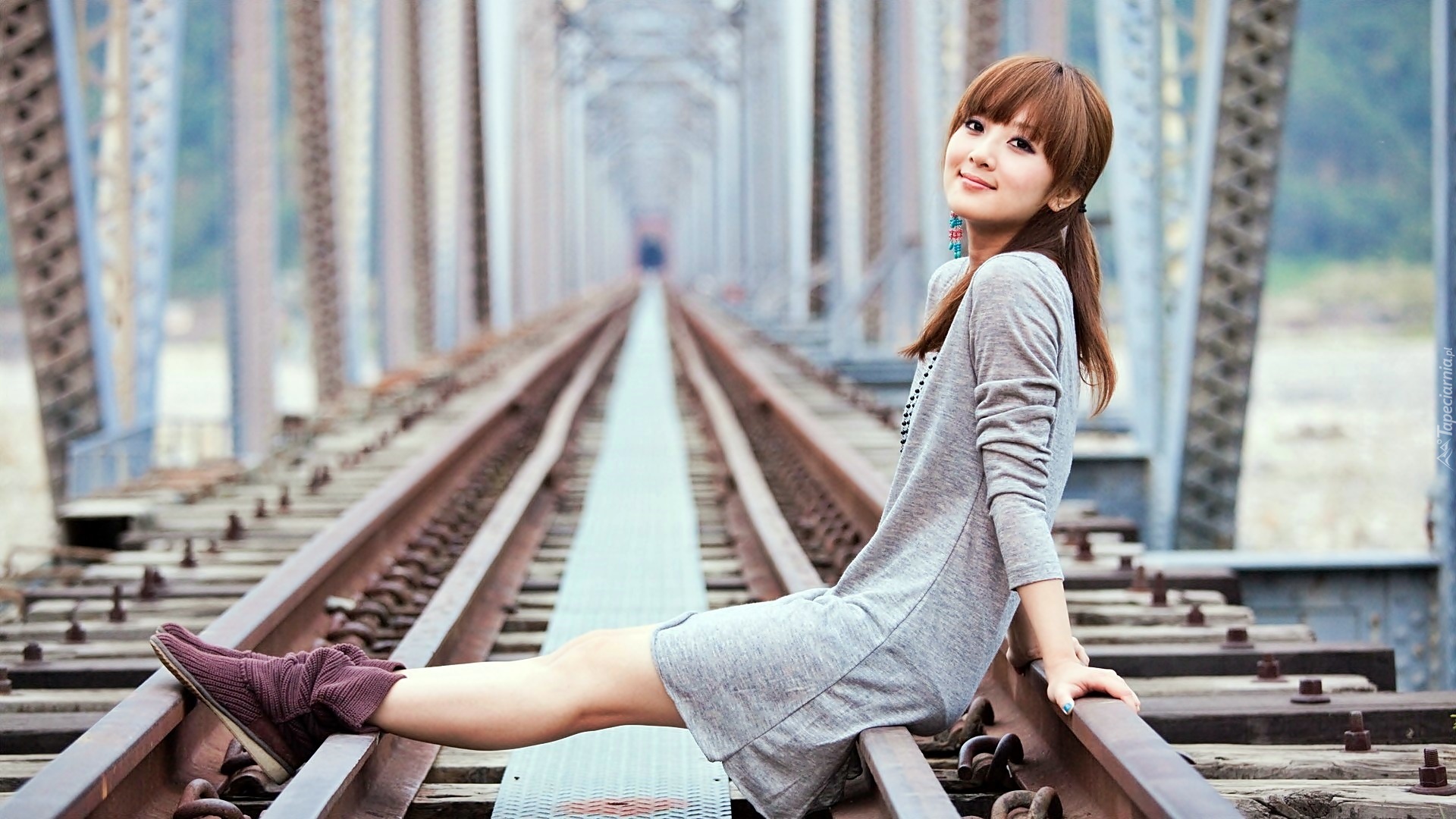 Edytor tapety: Mikako, Zhang, Kaijie, Modelka, Most, Tor, Kolejowy, Rozmycie