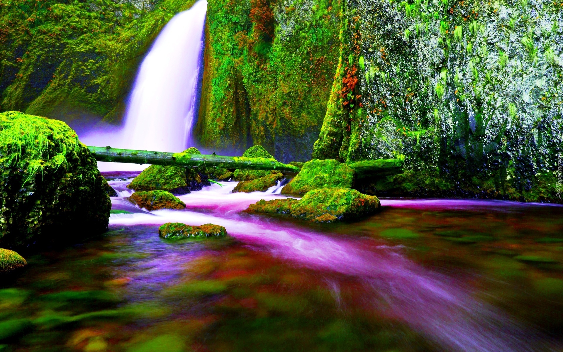 Edytor tapety: Wodospad, Skały, Jeziorko