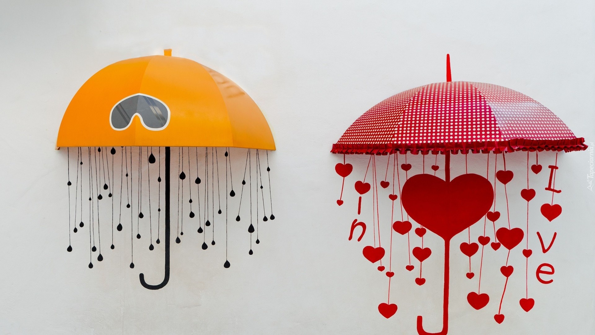 Edytor tapety: Parasole, Serduszka, Napis