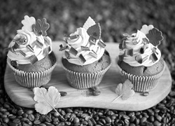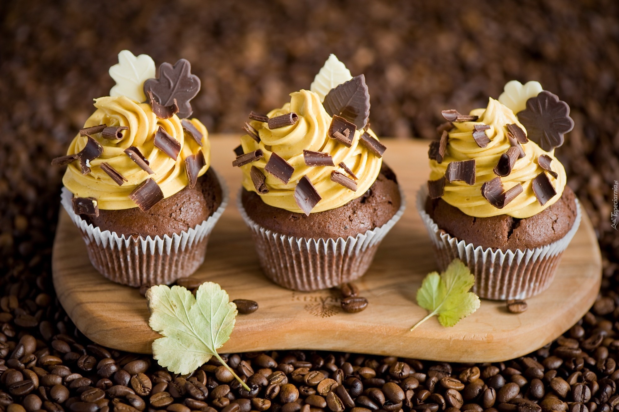 Edytor tapety: Trzy, Babeczki, Ziarna, Kawy, Taca