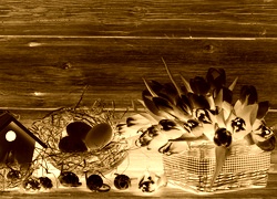Edytor tapety: Kosze, Tulipany, Jajka, Siano, Wielkanoc, Kompozycja